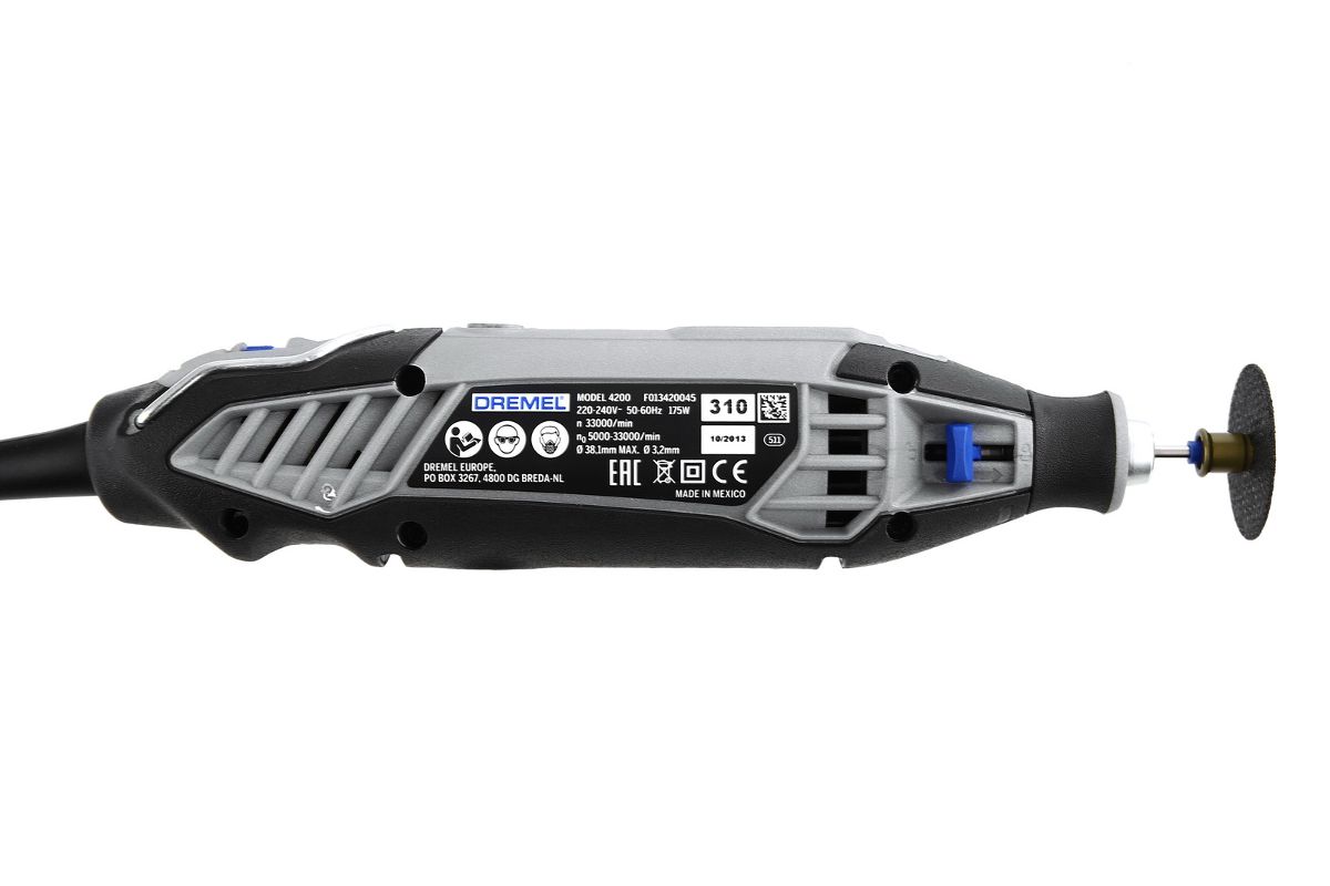 Мини-дрель DREMEL 4200-4/75 — многофункциональный инструмент, оснащенный системой быстрой смены насадок EZ Change. Потребляет 175 Вт. Он оптимально подходит для тонких работ и небольшого ремонта. Меняя оснастку, можно сверлить, резать, шлифовать, полировать заготовки из различных материалов. За счет регулируемой частоты вращения (от 5 до 33 тыс. об/мин) можно настроить работу мини-дрели нужным образом. Наличие константной электроники повышает производительность и качество обработки. Тонкий корпус с мягкими накладками удобно лежит в руке. Мини-дрель комплектуется богатым набором насадок и приспособлений.
