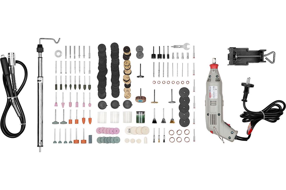 Мини-дрель ЗУБР ЗГ-130ЭК H242 для тонкой резки, гравировки, полировки и шлифовки. Она незаменима при высокоточных работах по металлу, пластику, древесине, керамике и т.д. Мощность 130 Вт. Обороты 8000-30000 об/мин. В комплекте – весь набор необходимой оснастки.