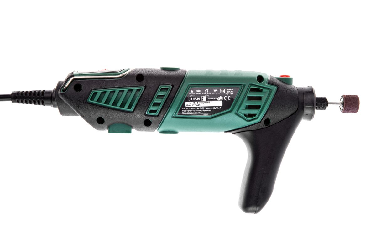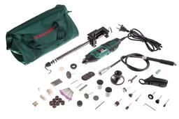Мини-дрель мощностью 170 Вт с большим набором насадок (160 шт.). Используется для гравировки, полирования и резки в небольших объемах. Преимущества модели: высокая скорость — до 35 тыс. об/мин; функция регулировки оборотов; малый вес — 700 г; подвеска для крепления на кронштейн; нескользящий корпус; в комплекте — кронштейн, гибкий вал и насадки.