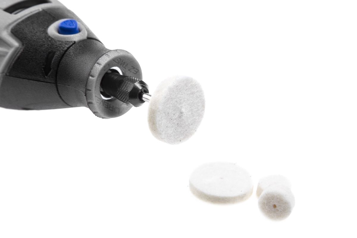 4 полировальных круга (диаметр — 13 и 26 мм) для обработки металла и пластмассы. Используются для полировки тонкого слоя дерева, монет, листового металла.
