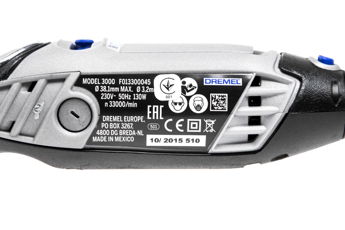 Dremel 3000 – 3/55 — универсальная мини-дрель для реставрации предметов интерьера, мелкого ремонта и рукоделия. Модель компактна, ее длина — 19 см, вес — всего 550 грамм. В комплекте 55 насадок и аксессуаров.