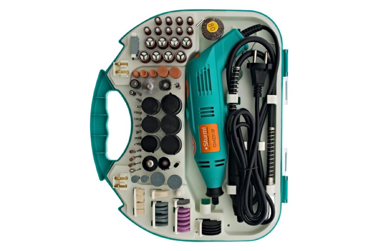 Гравер электрический STURM! GM2315F 8000-30000об/мин, цанга 3,2мм, гибкий вал, кейс, 210ед