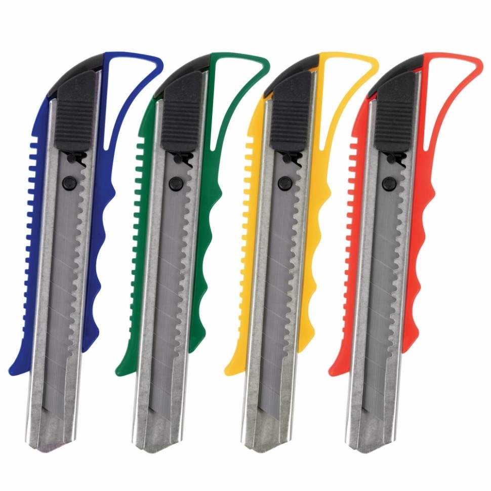 Заводская упаковка нарушена или отсутствует. Товар НОВЫЙ, в полной комплектации. / Канцелярский нож STAFF "PRO" — универсальный, удобный и простой инструмент, который применяется во многих сферах: на складе, в офисе, строительстве, производстве, творчестве и дома. Предназначен для резки различных материалов разной плотности и толщины. Ширина лезвия: 18 мм. Тип механизма фиксации: защелка. Материал корпуса: пластик. Наличие металлических направляющих: да. Отверстие для подвеса: да. Цвет корпуса: ассорти. Упаковка: полибэг Бренд - STAFF. Производитель - Китай. . Штрихкод - 4606224233956