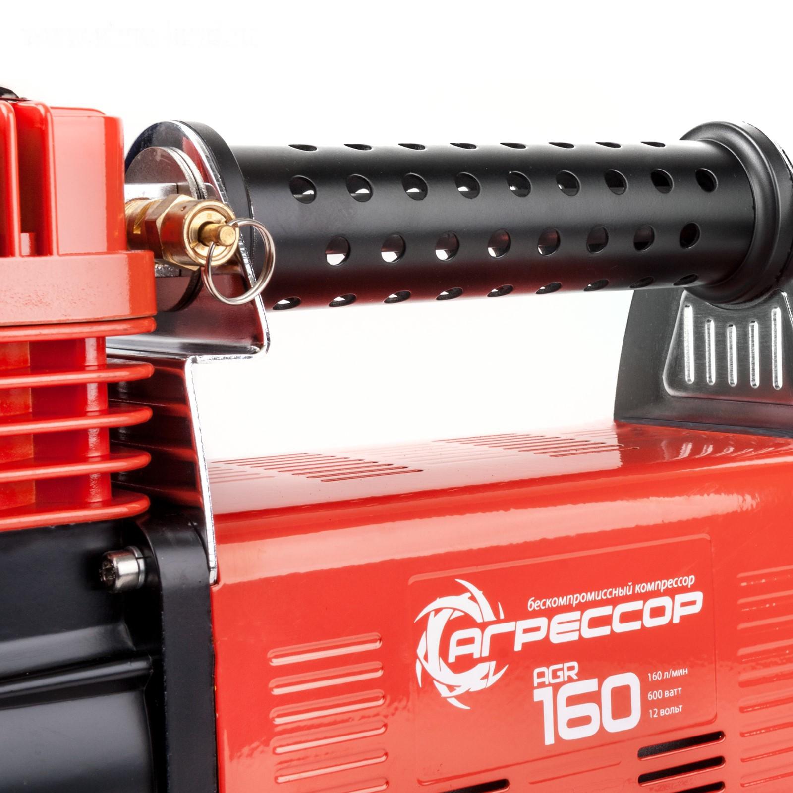 Компрессор автомобильный "Агрессор" AGR-160, металлический, 12V, 600W, производительность 160 л/мин, переходники для накачки лодок, сумка