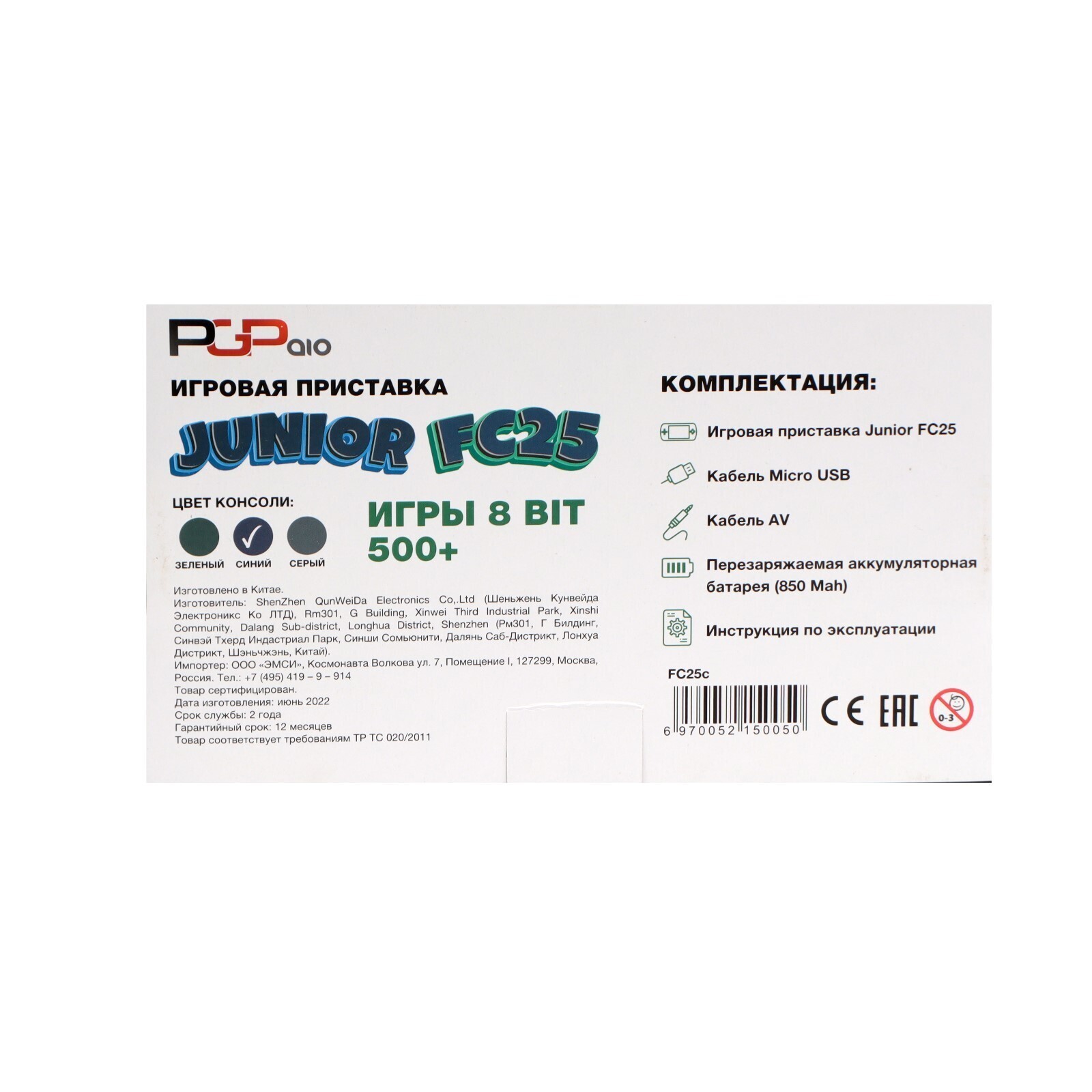 Игровая приставка PGP AIO Junior FC25c, экран 3", AV кабель, 500 игр, синяя