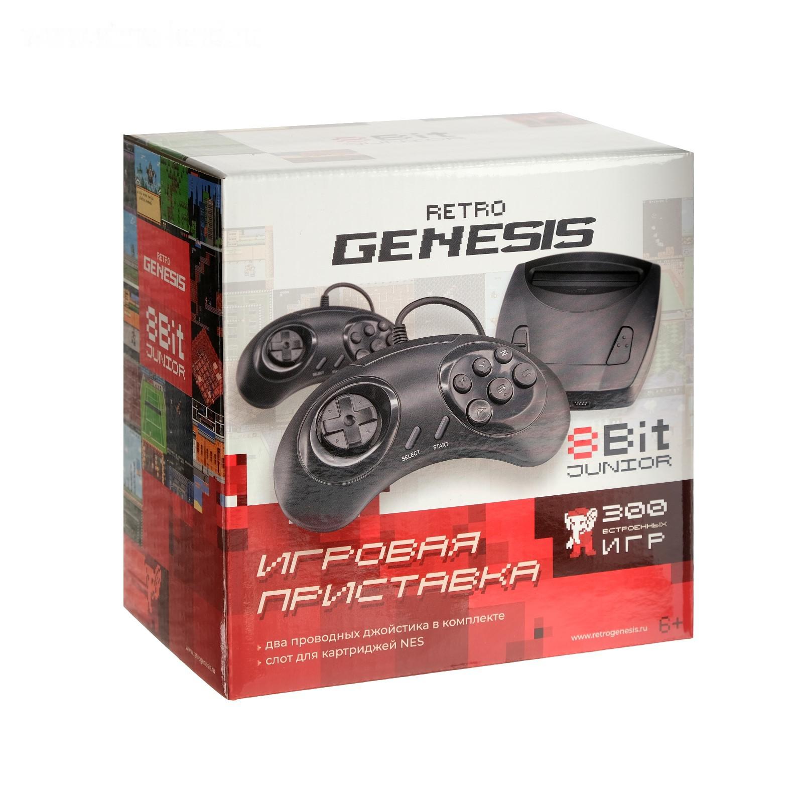 Игровая приставка Retro Genesis 8 Bit Junior, AV кабель, 2 проводн. джойст., 300 игр, черная