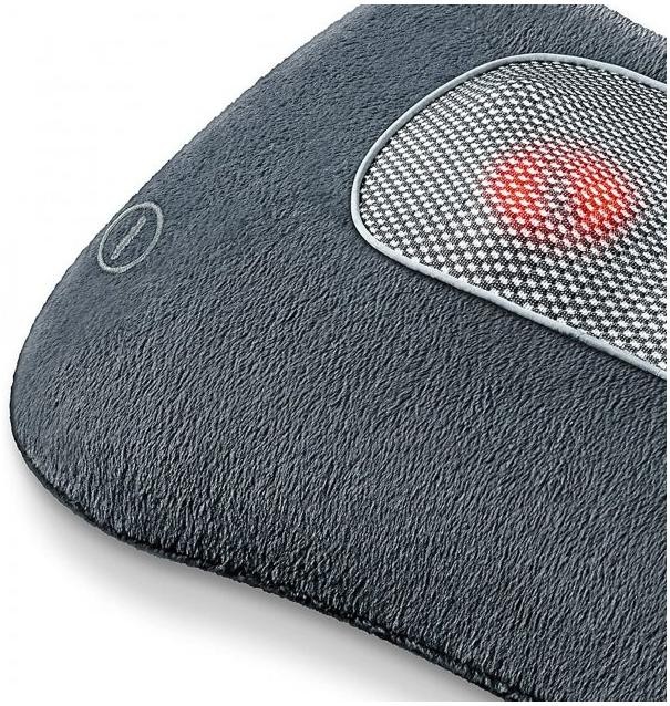 Просте застосування елементів керування й ремінця на липучці для фіксації подушки, наприклад, на стільці, а також компактний розмір подушки гарантують унікальні відчуття від масажу. Функція нагрівання й підсвічування — підсилює ефект масажу, водночас не тільки відбувається поверхневе зігрівання шкіри, але й підсилюється кровопостачання на цій зоні, аж до глибоких шарів тканин і м'язів. Надм'який чохол із мікрофлісового волокна особливо приємний на шкірі, його можна прати в пральній машині, що спрощує очищення.