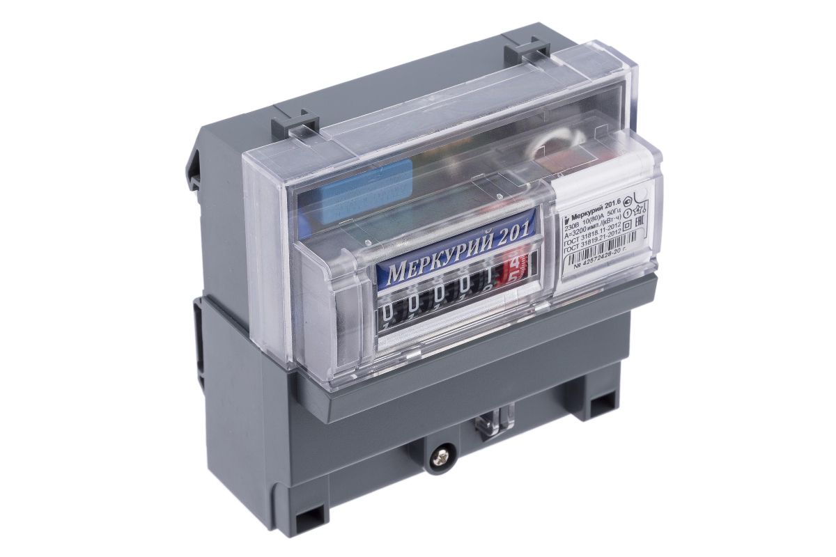 ИНКОТЕКС МЕРКУРИЙ 201.6 – однофазный, однотарифный счётчик для учёта электроэнергии. Номинальный ток 10 А, максимальный ток – 80 А. Частота 50 Гц. Напряжение 220 В. Пригодится дома, на даче или предприятии.
