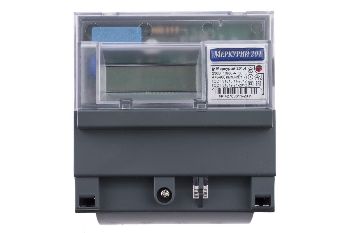 Счетчик электроэнергии ИНКОТЕКС МЕРКУРИЙ 201.4 1ф 10-80А 1 класс точн. 1 тариф. имп. вых. ЖКИ