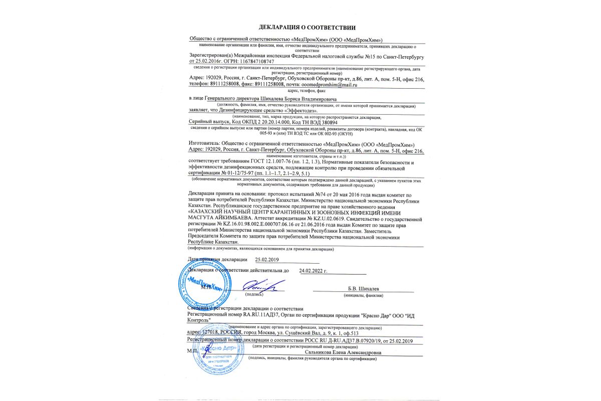 Концентрат дезинфицирующего ср-ва для поверхностей МедПромХим ЭФФЕКТОДЕЗ