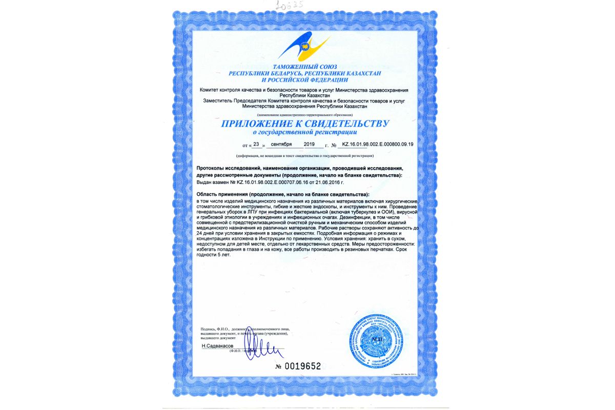- Для дезинфекции изделий медицинского назначения: хирургических, стоматологических, элементов наркозно-дыхательного оборудования и приспособлений к нему;