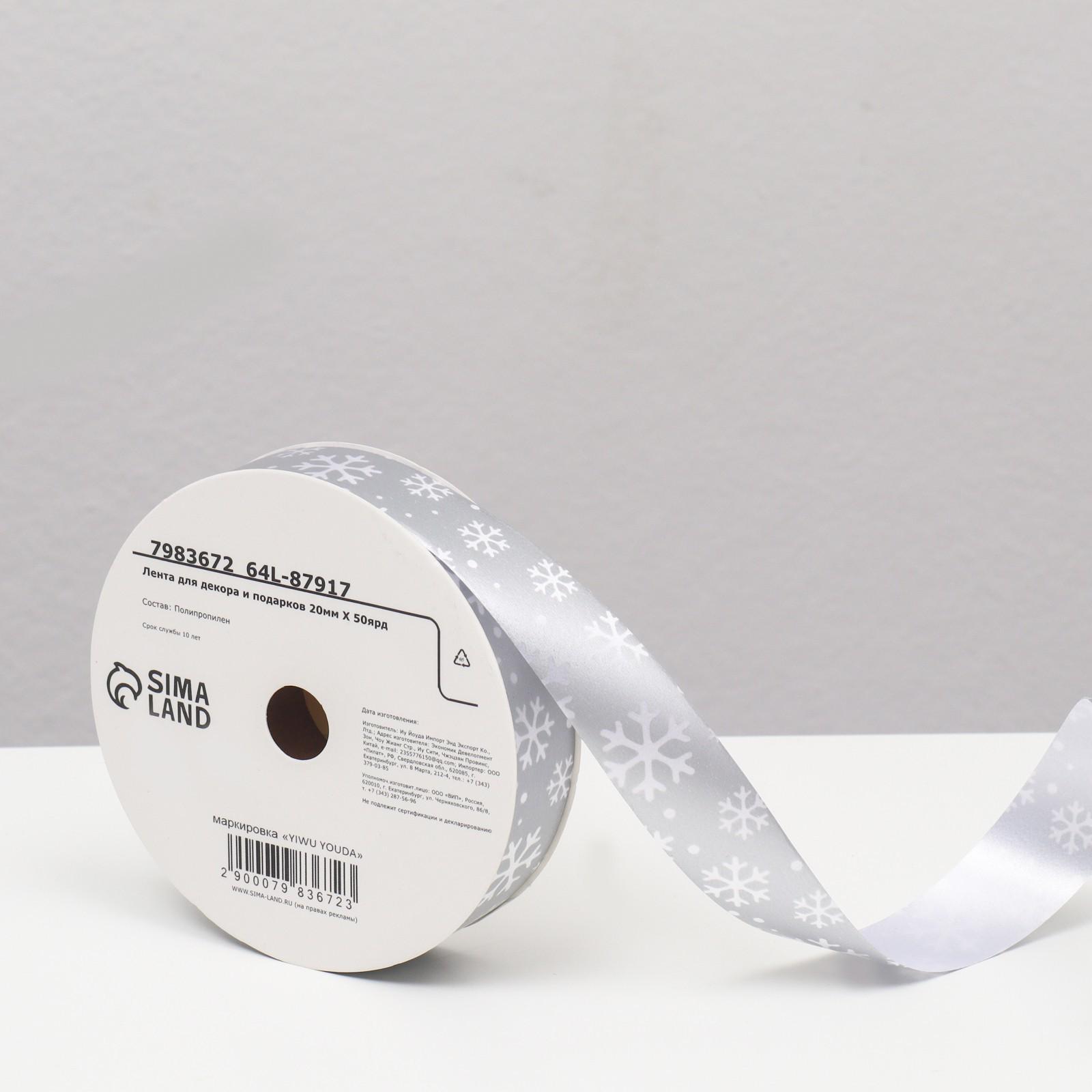 Лента для декора и подарков, снежинки, 2 см х 45 м