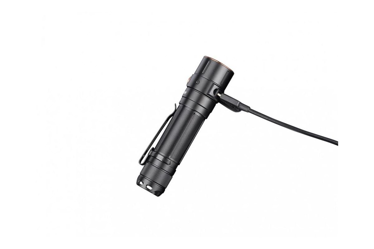 Fenix E28R - долгожданный фонарь на каждый день. Он заряжается через порт USB Type-C с помощью зарядного кабеля. Порт имеет внутреннюю защиту от попадания воды.