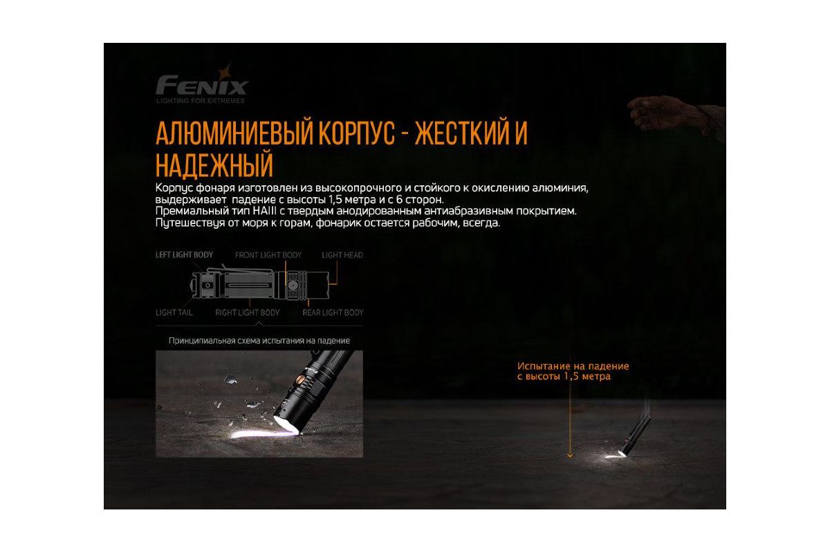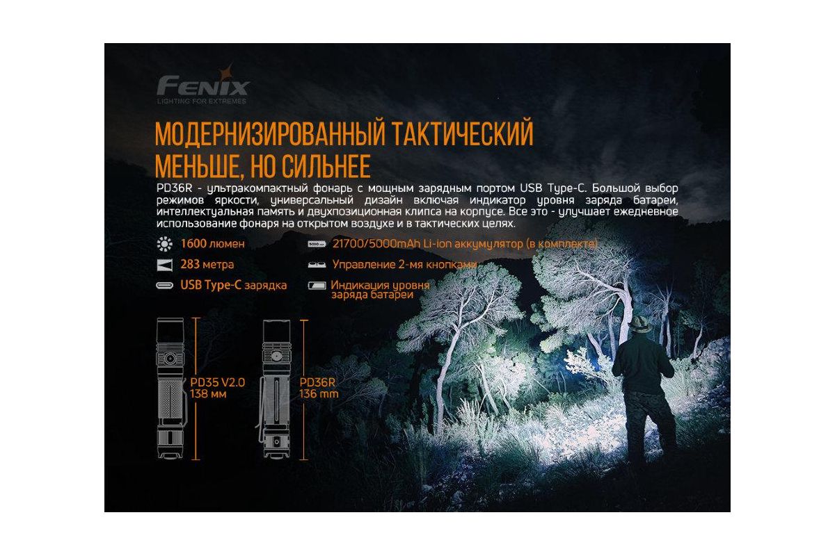 Данные ключевые моменты делают Fenix PD36R применимым в военных и полицейских операциях, ориентировании на местности, экстренного освещения и т.д.