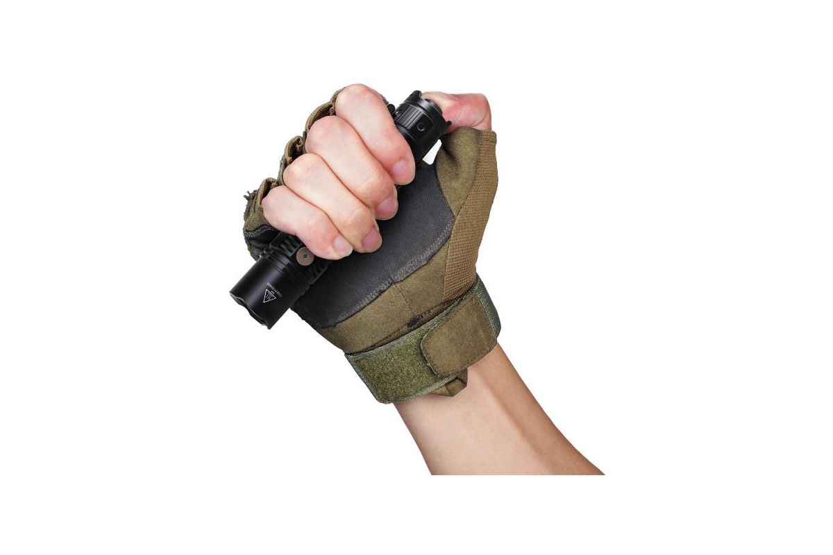 Дружелюбное и быстрое управление двумя кнопками, одной - тактической в хвосте фонаря и второй - металлической боковой кнопкой.