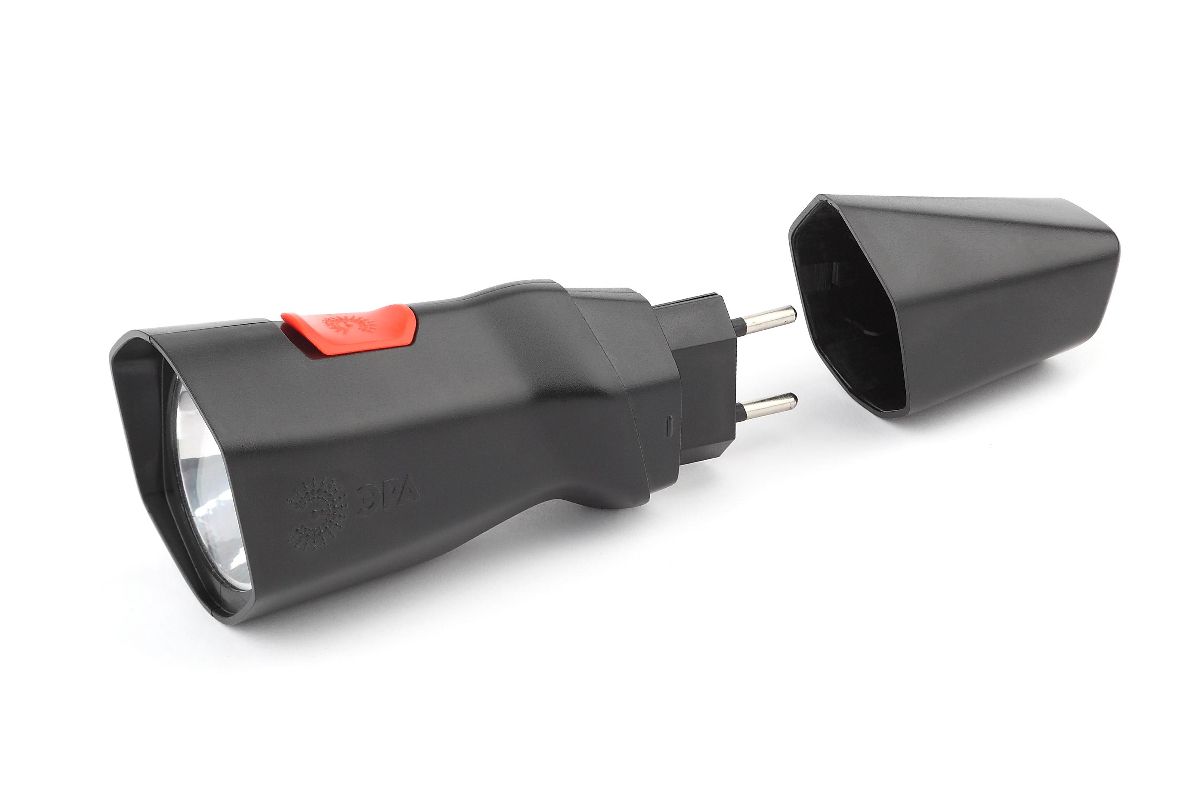 - РА МА-501 напрямую заряжается от электросети 220 В - не нужно брать с собой ни батарейки, ни провода для подзарядки. Вилка встроена прямо в корпус, достаточно просто снять с неё специальную защитную крышку и вставить фонарь в розетку. От одной подзарядки прибор проработает без перерыва 15 часов – этого с запасом хватит на целую ночь или многодневное путешествие, если включать фонарь на несколько часов по вечерам.