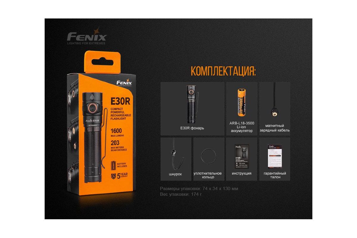 Фонарь FENIX E30R карманный 1600Лм 203м