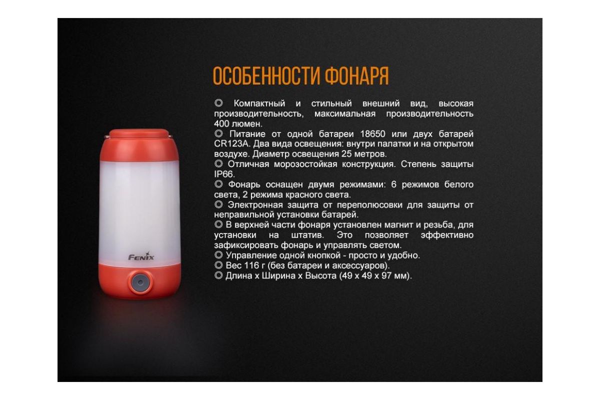 Fenix CL26R - кемпинговый светильник максимальной яркостью 400 люмен с разной направленностью света и дополнительным красным светом.