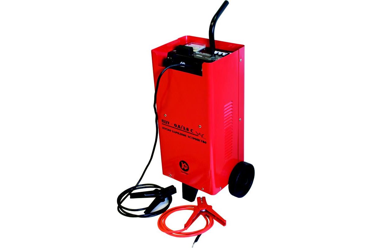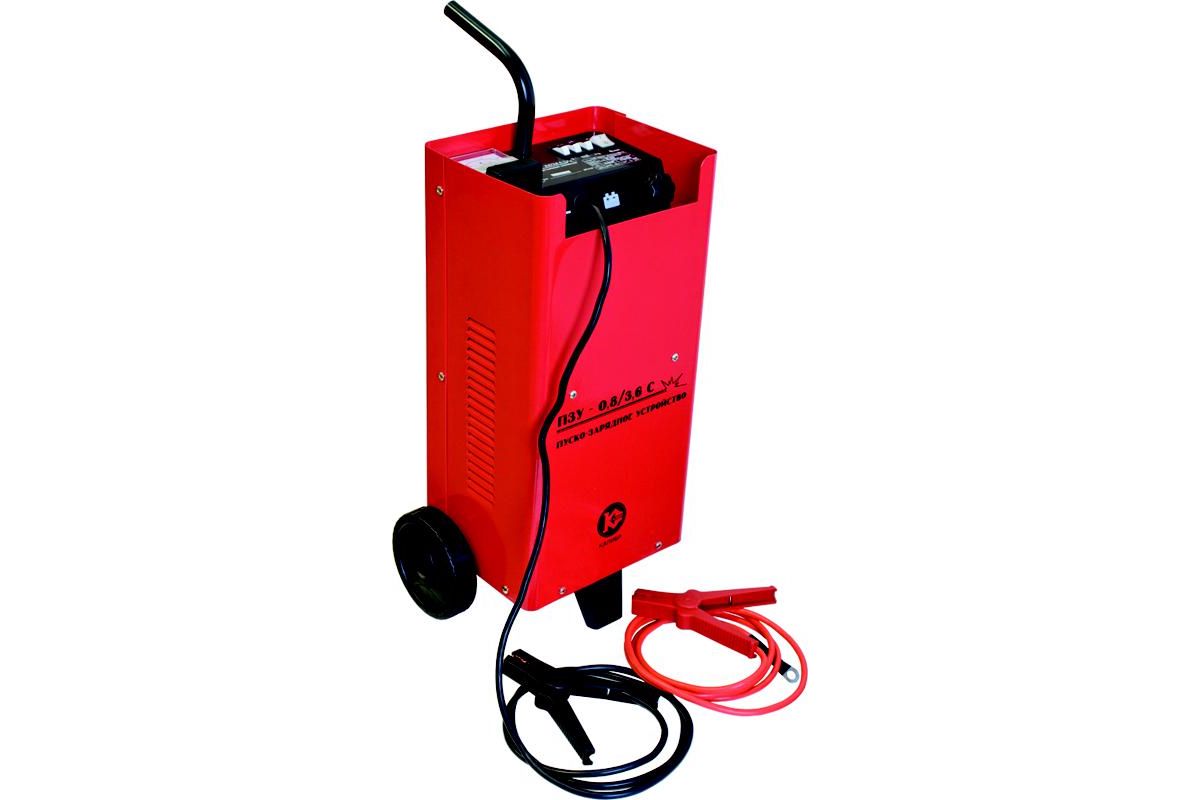 Пуско-зарядное устройство КАЛИБР ПЗУ-0,8/3,6С предназначено для зарядки кислотно-свинцовых аккумуляторов, а также запуска двигателей автомобилей, мотоциклов и т.д. Максимальный ток зарядки – 20 А, запуска – 120 А. Пригодится в гараже или на даче.
