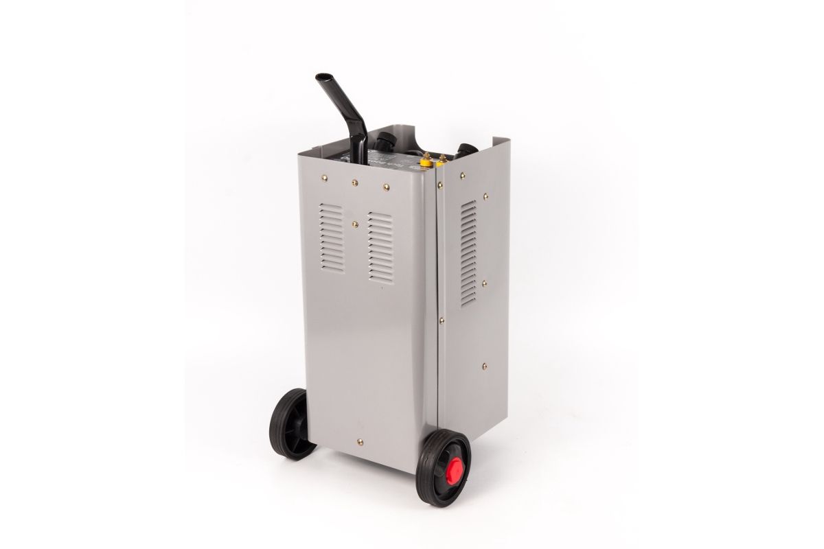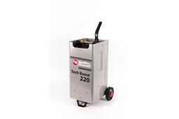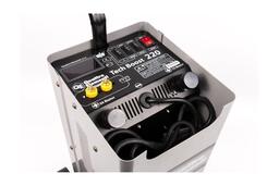 Tech Boost 220 771-435 Представляет собой переносное однофазное трансформаторное устройство, предназначено для заряда перезаряжаемых свинцово-кислотных и гелевых аккумуляторных батарей постоянным током и помощи при пуске бензиновых и дизельных двигателей внутреннего сгорания. Аппараты оснащены сетевым кабелем и пуско-зарядными кабелями с зажимами. Вместе с аппаратом поставляется рукоятка для переноски/перевозки, колеса. Аппараты защищены от перегрева с помощью термостата. Оснащены цифровым дисплеем индикации зарядного тока, а так же переключателями режимов заряда, позволяющими ограничить ток заряда для батарей меньшей емкости, чтобы их не повредить или быстрее заряжать батареи большей емкости.