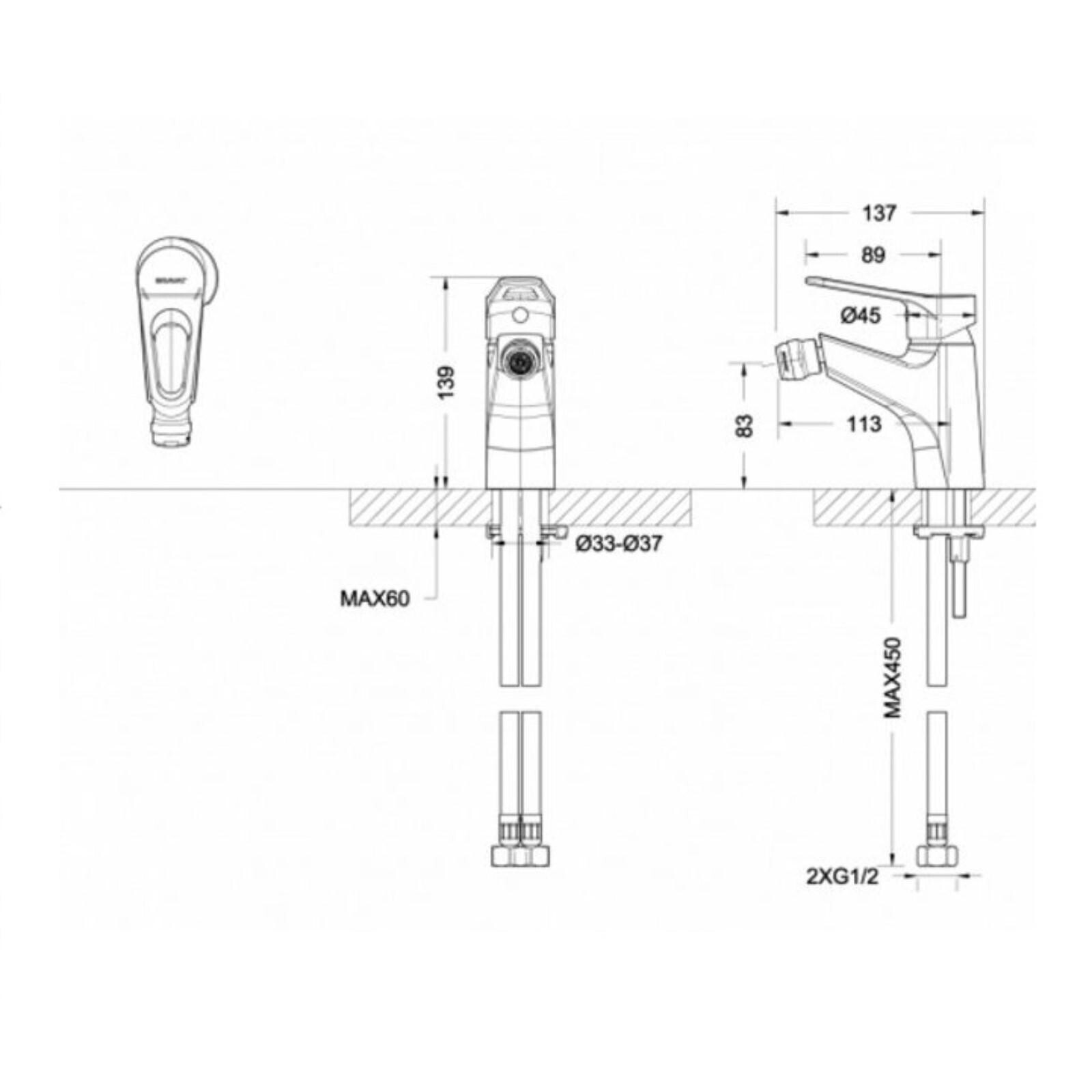 Смеситель для биде BRAVAT Eco-D F393158C, однорычажный, корпус латунь, хром