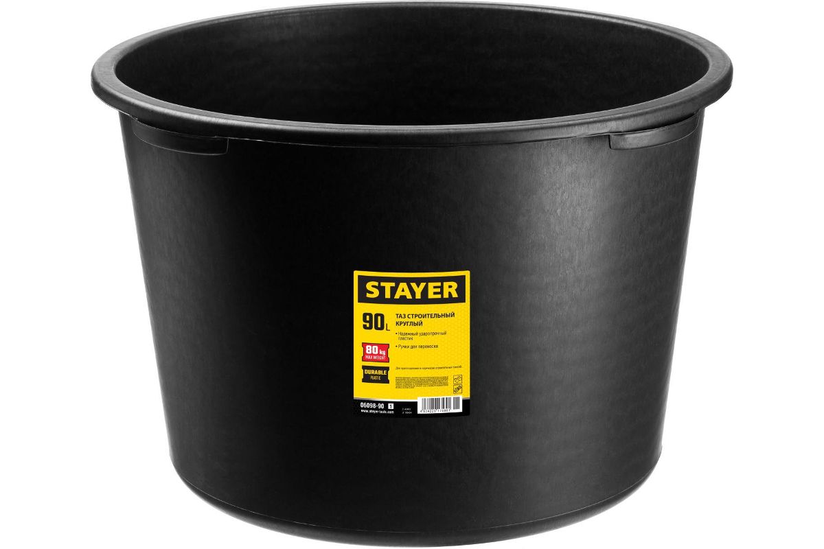 Таз STAYER 06098-90_z01 строительный круглый, 90 л -Надежный ударопрочный пластик -Ручки для переноски
