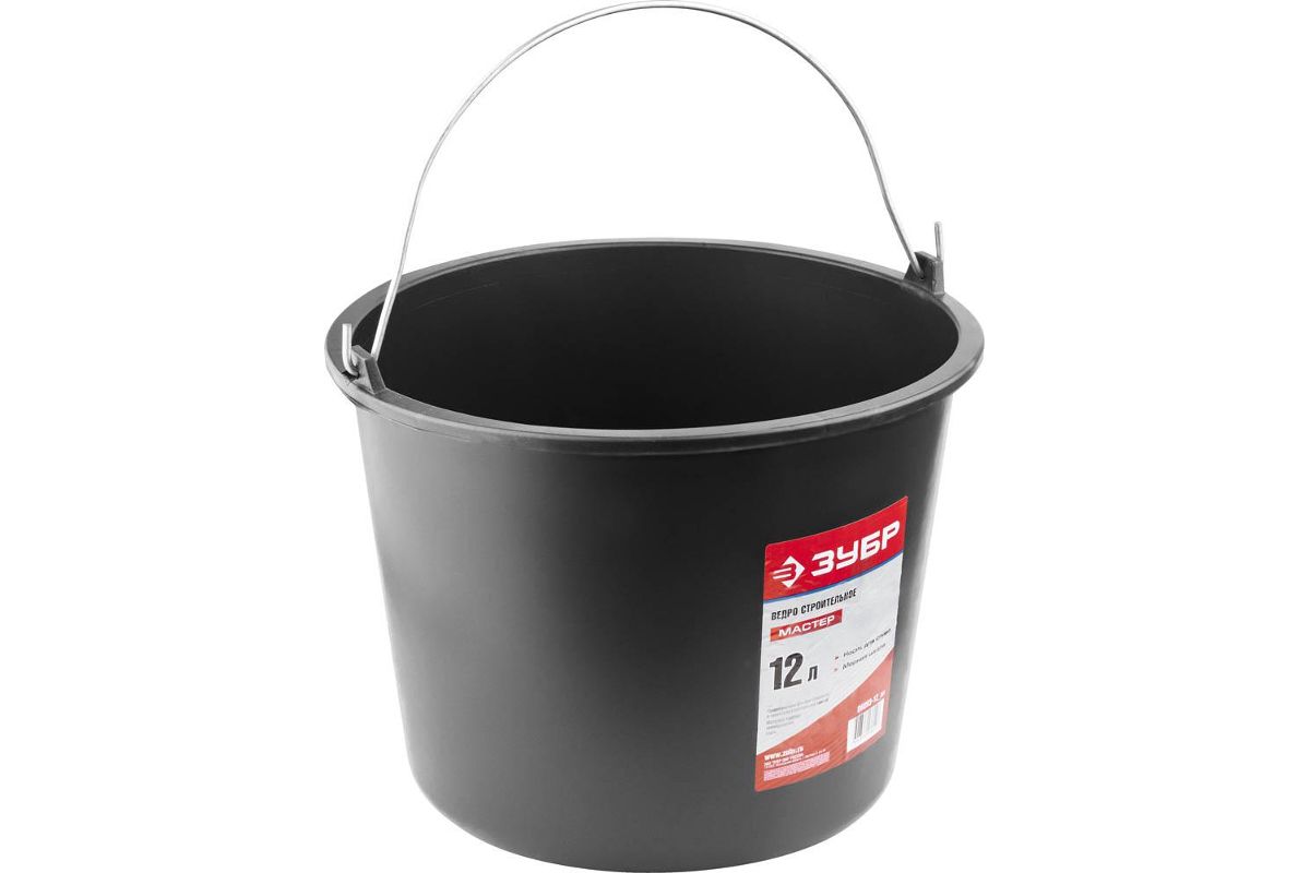 Ведро ЗУБР 06093-12_z01 МАСТЕР строительное пластмассовое, 12л ударопрочный пластик, металлическая ручка