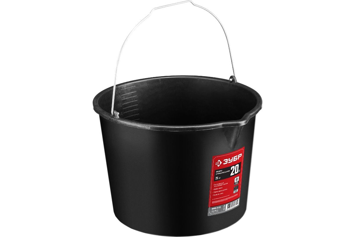 Ведро ЗУБР 06093-20_z02 строительное пластмассовое, 20 л, высокопрочное, с носиком -Высокопрочный пластик -Носик для слива -Мерная шкала -Оцинкованная рукоятка