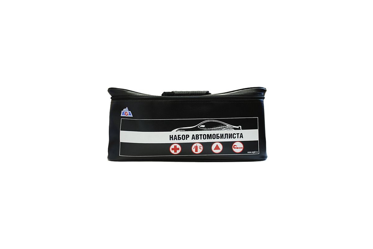 Набор автомобилиста AGA №4 (аптечка, огнетушитель, знак авар.ост, трос 3.5т, перчатки) кож.зам