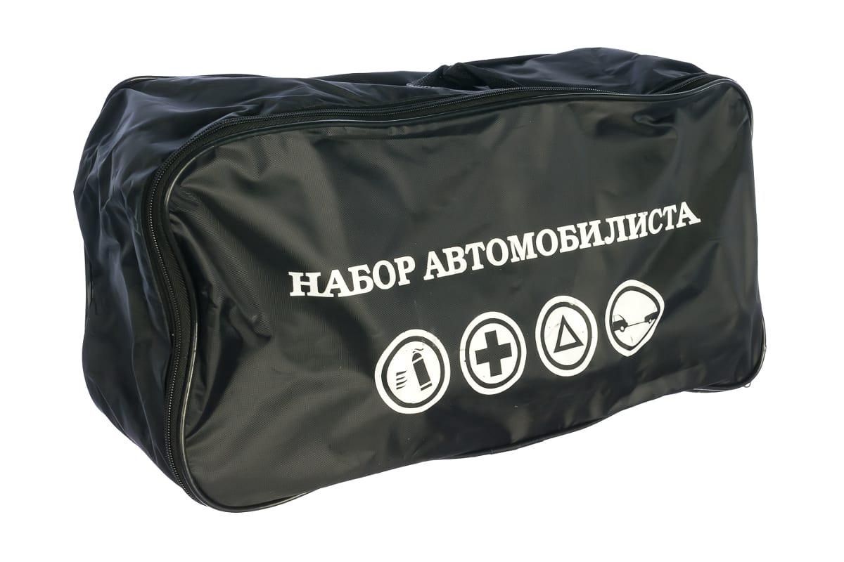 Набор автомобилиста в сумке. Содержит все необходимые компоненты, которые могут пригодиться в различных дорожных ситуациях.