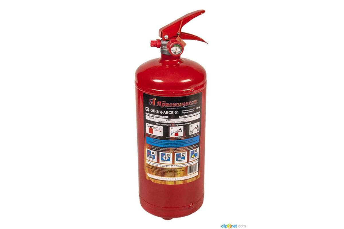 Огнетушитель порошковый закачной ОП-2(з)-ABCE-01, ЯРПОЖИНВЕСТ, масса заряда ОТВ - 2,0±0,1 кг., продолжительность подачи ОТВ не менее 6 с., длина струи ОТВ не менее 2 м., масса заряженного огнетушителя 3,2 кг., 1/6