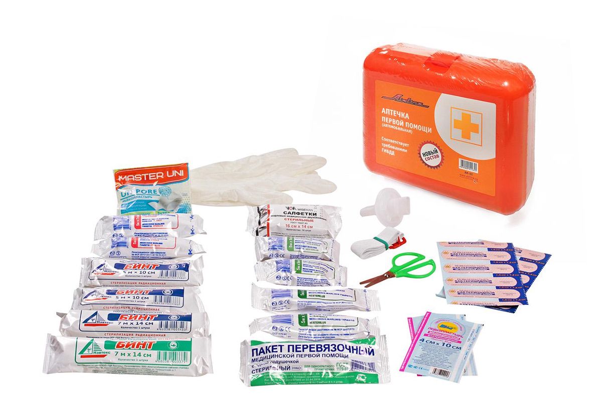 Аптечка автомобильная AIRLINE AM-02 в пластиковом футляре cоответствует требованиям ГИБДД