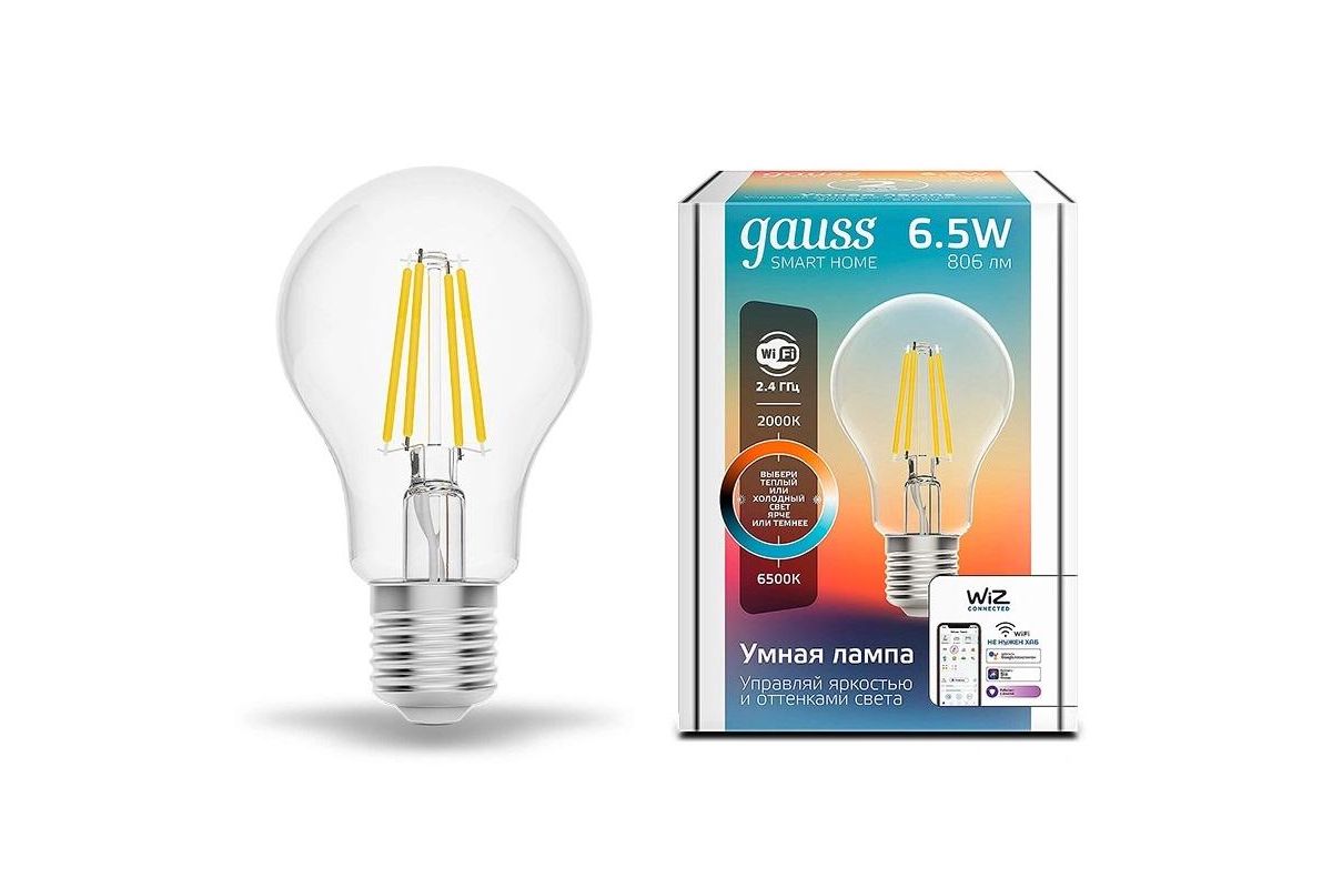Лампа светодиодная Gauss Smart Home DIM+CCT E27 A60 6,5Вт 2000-6500 К 1/10/40