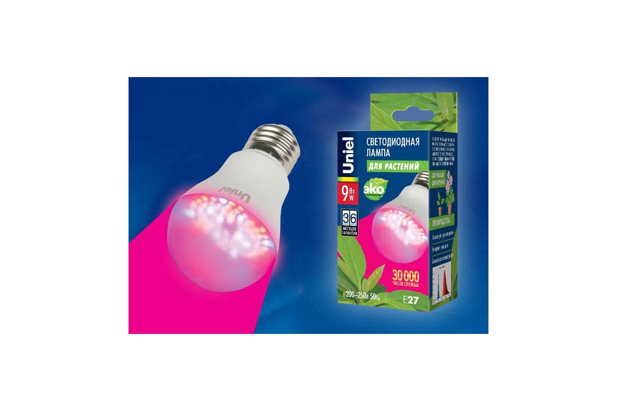Светодиодная лампа для растений UNIEL LED-A60-9W/SP/E27/CL ALM01WH
