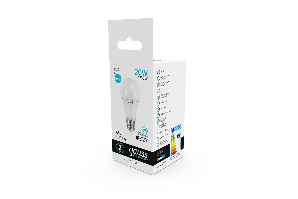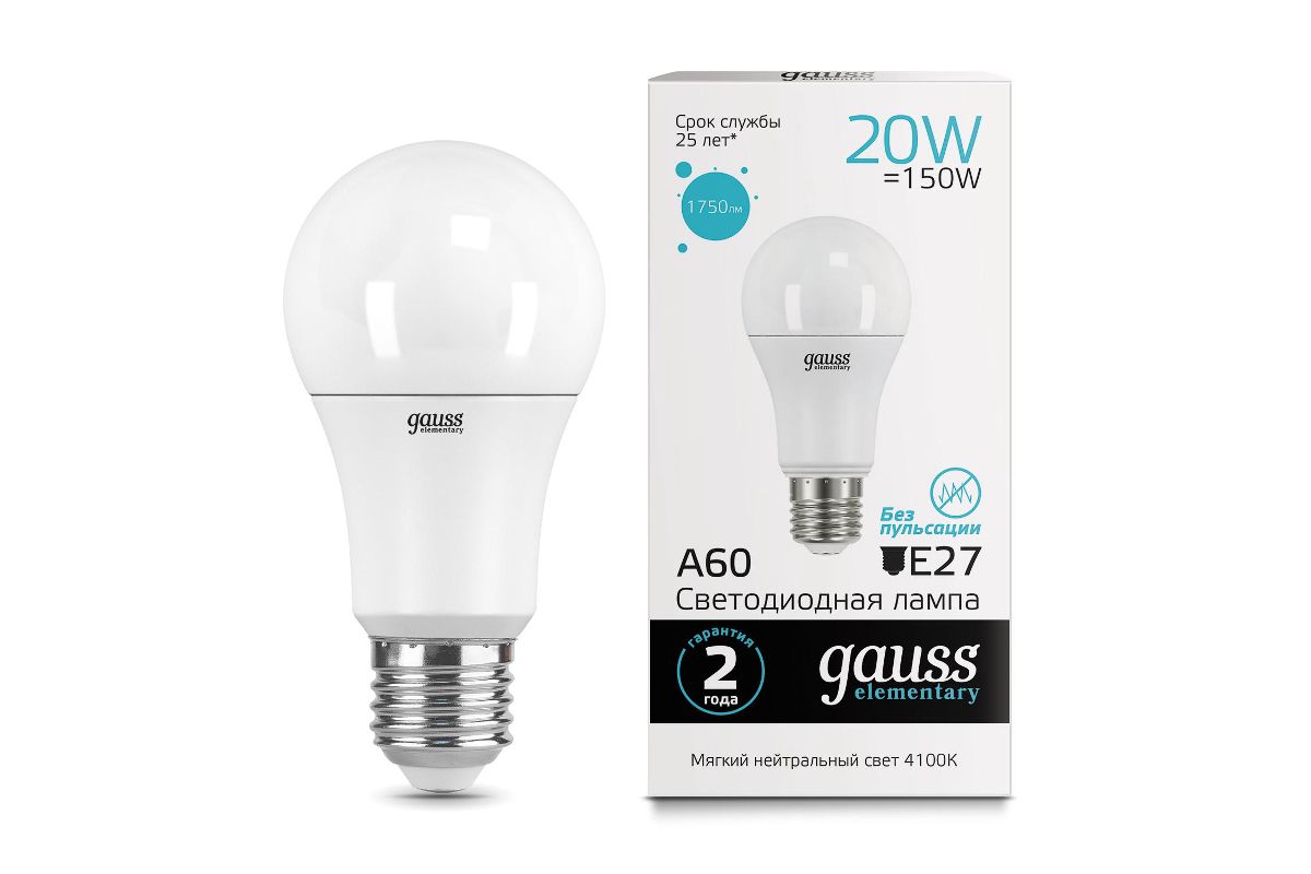 Лампа GAUSS LED Elementary A60 20W E27 4100K (23229)
