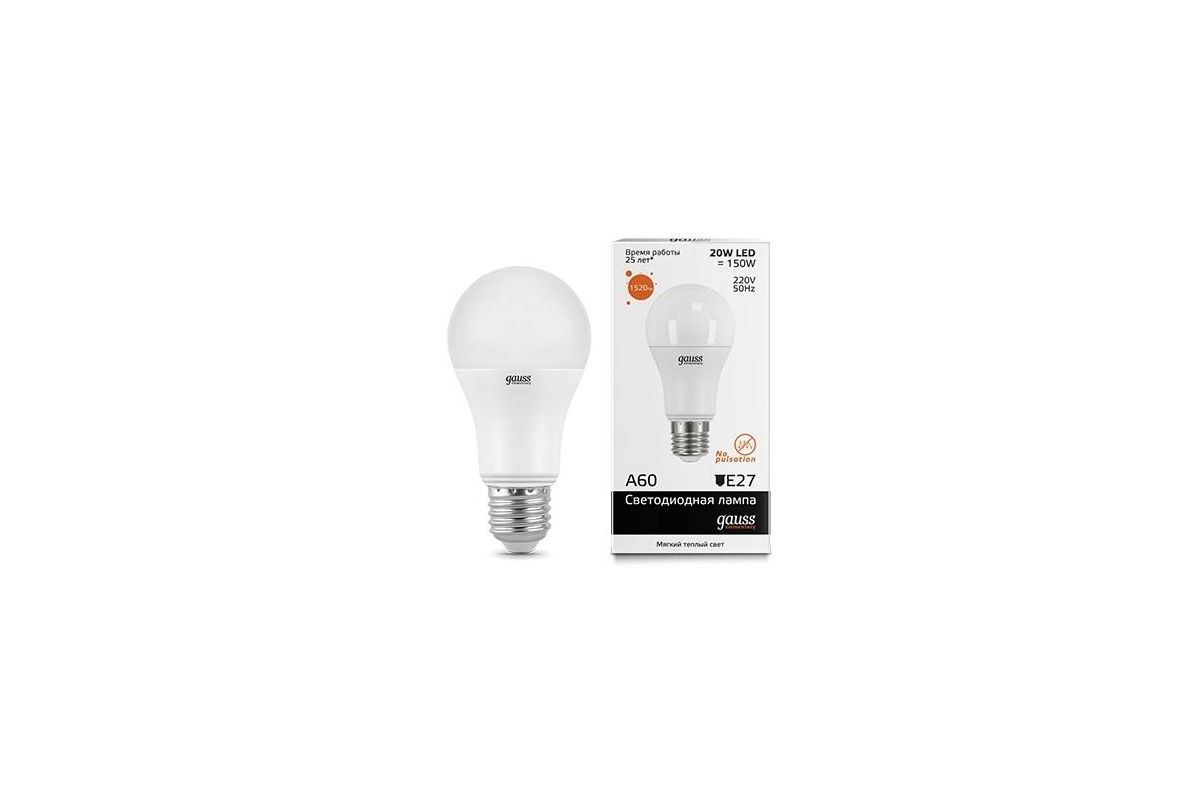 Лампа GAUSS LED Elementary A60 20W E27 3000K (23219)
