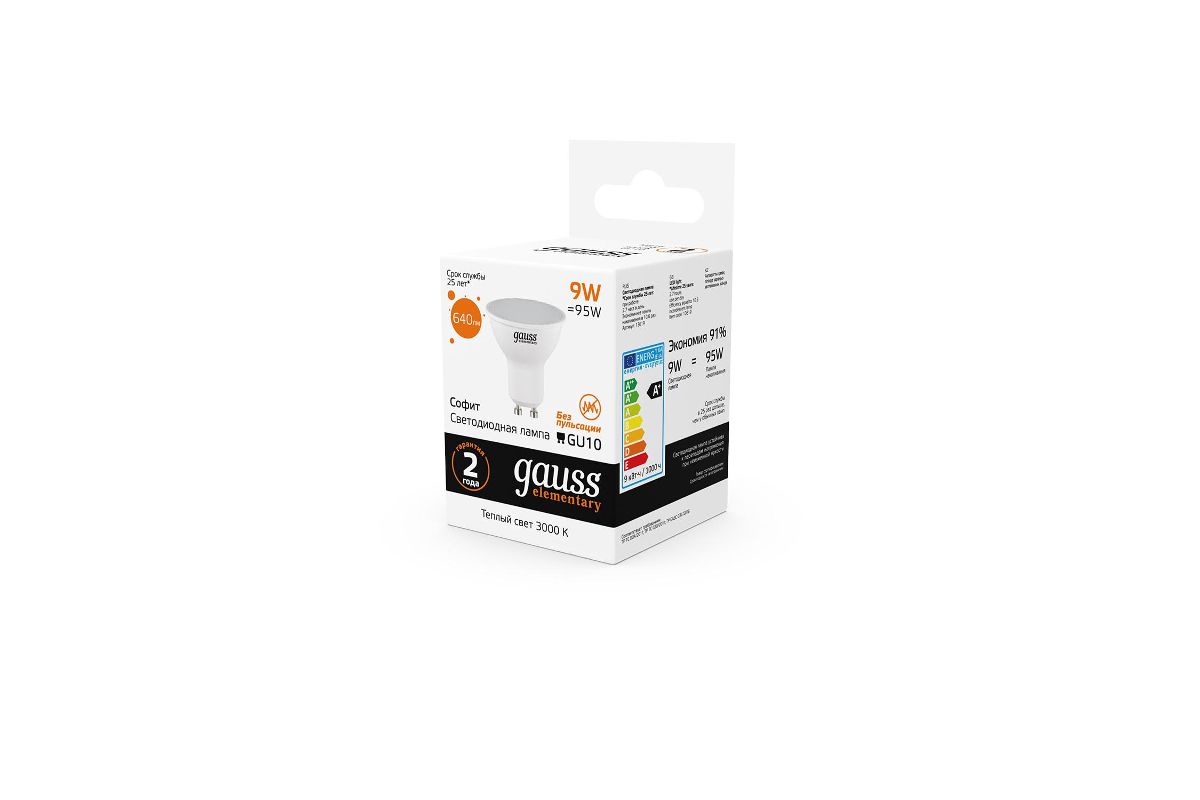 Лампа Gauss LED Elementary MR16 GU10 9W 640lm 3000К 1/10/100