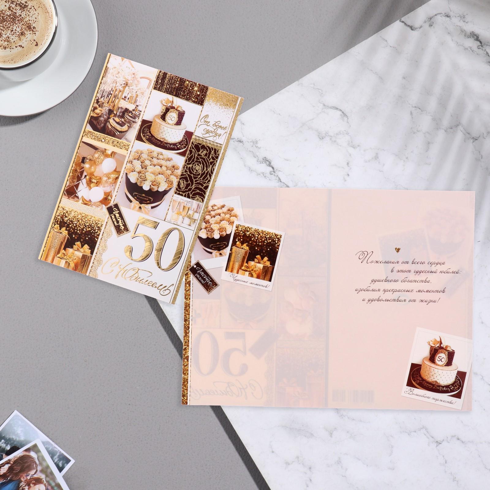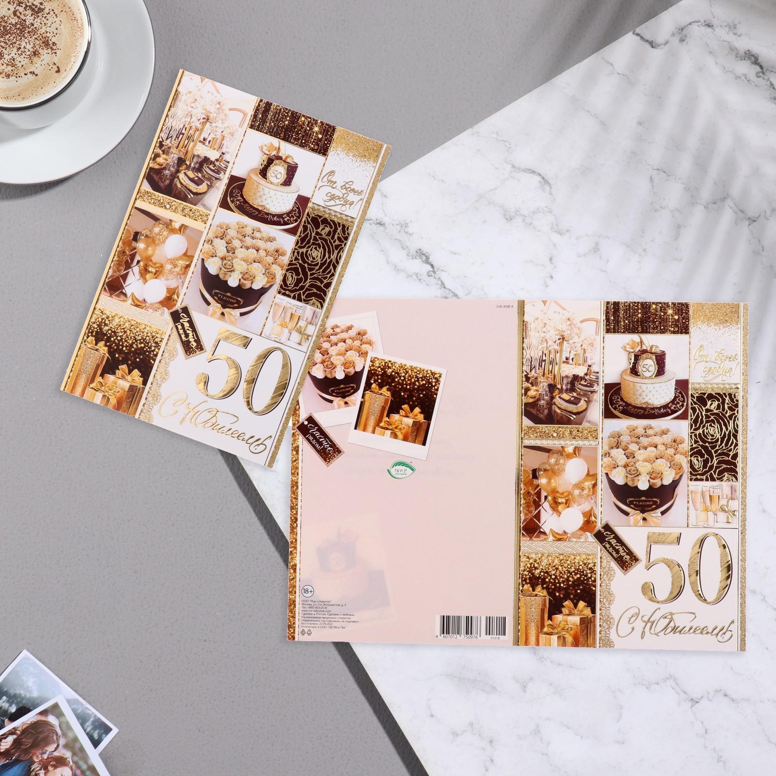 Открытка "С Юбилеем! 50" золото, колаж фото, 19х29 см
