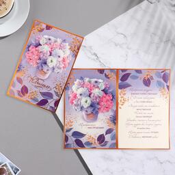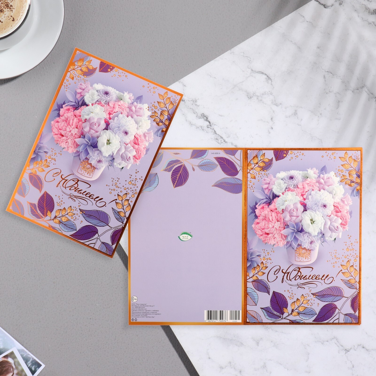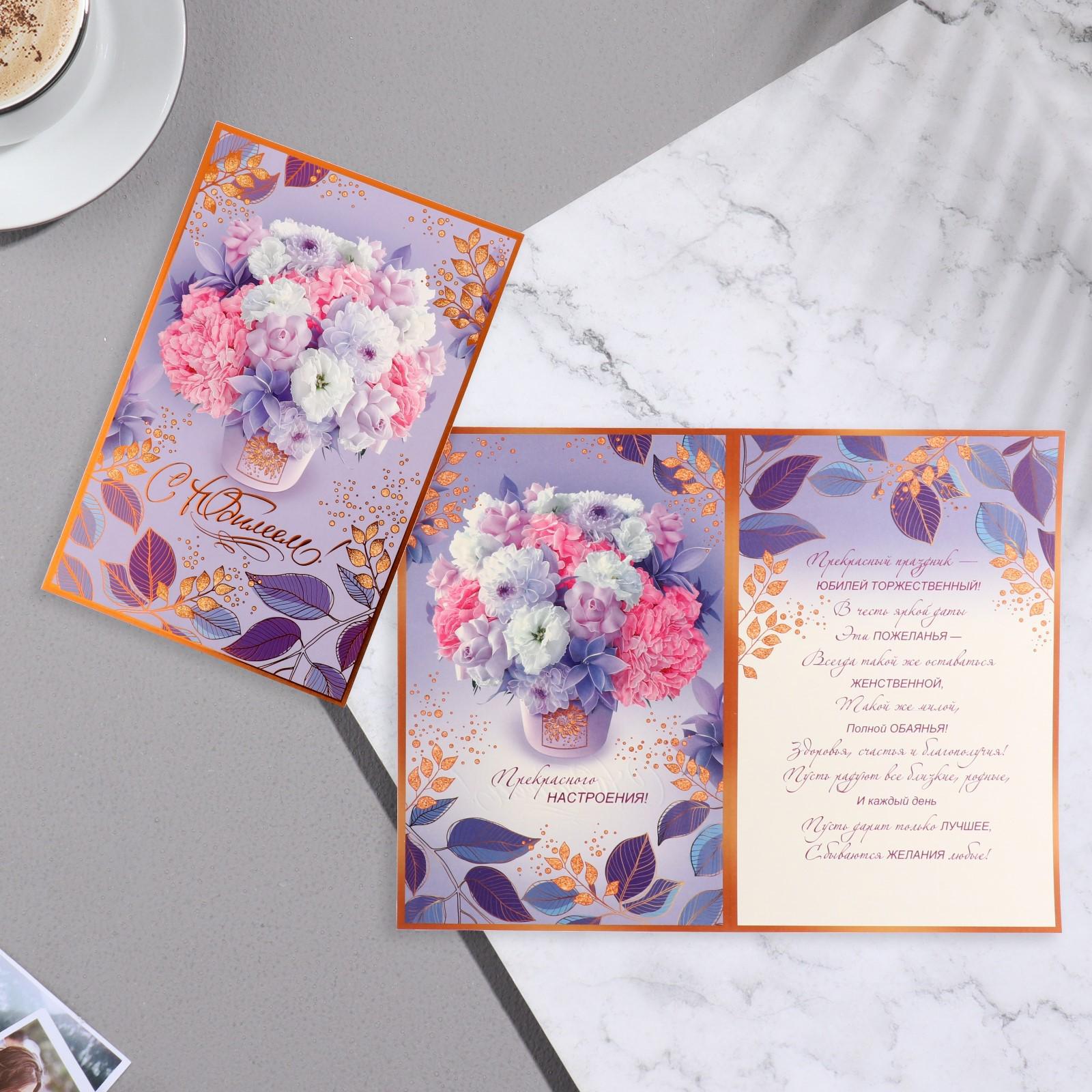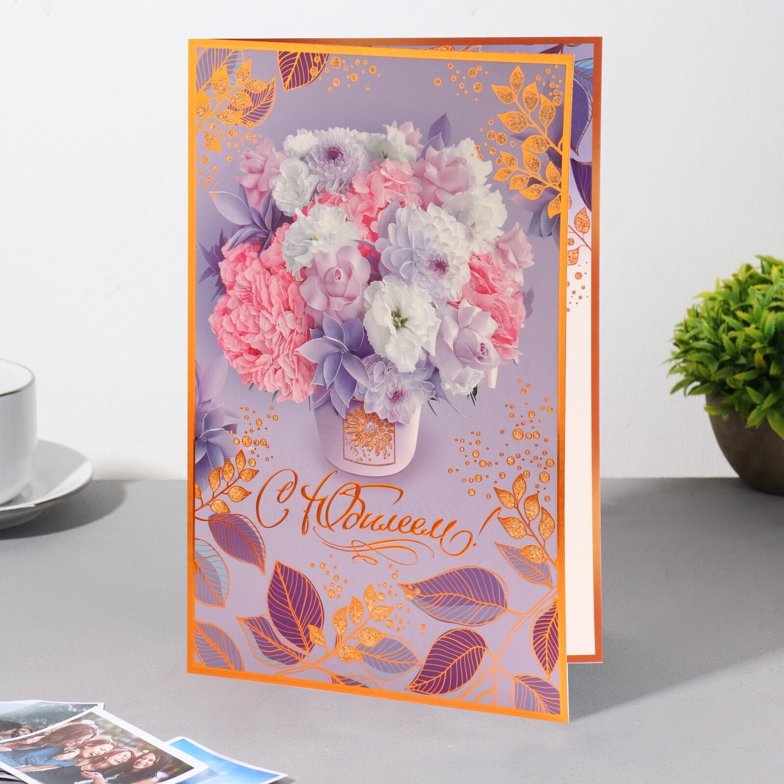 Открытка "С Юбилеем!" тиснение, цветы, 37,9х16 см