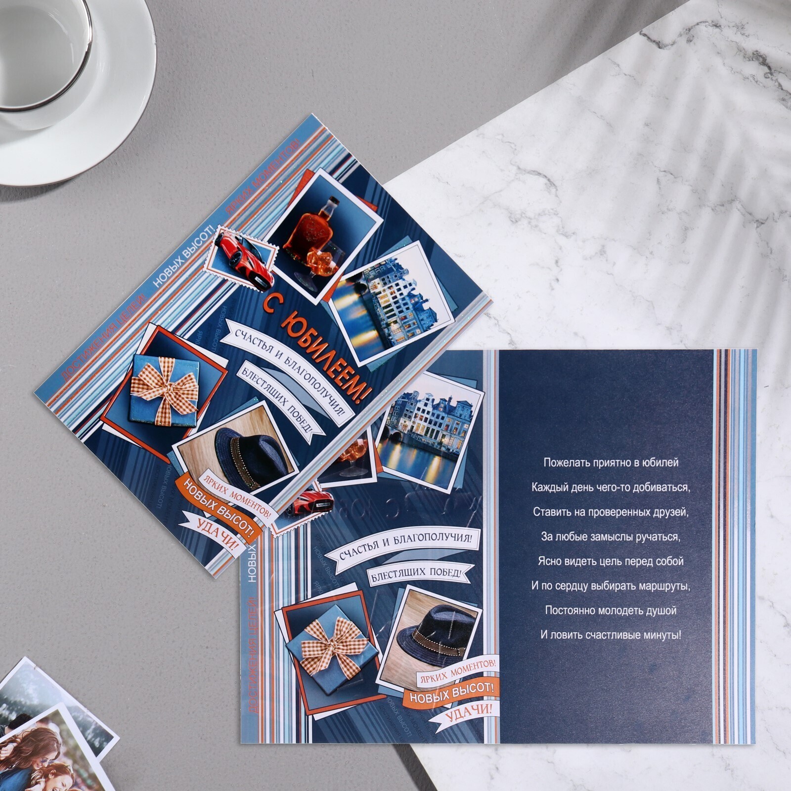 Открытка " С Юбилеем! - 5" ром, шляпа, синий, 18,7х28,4 см