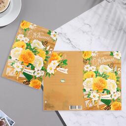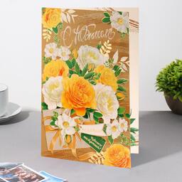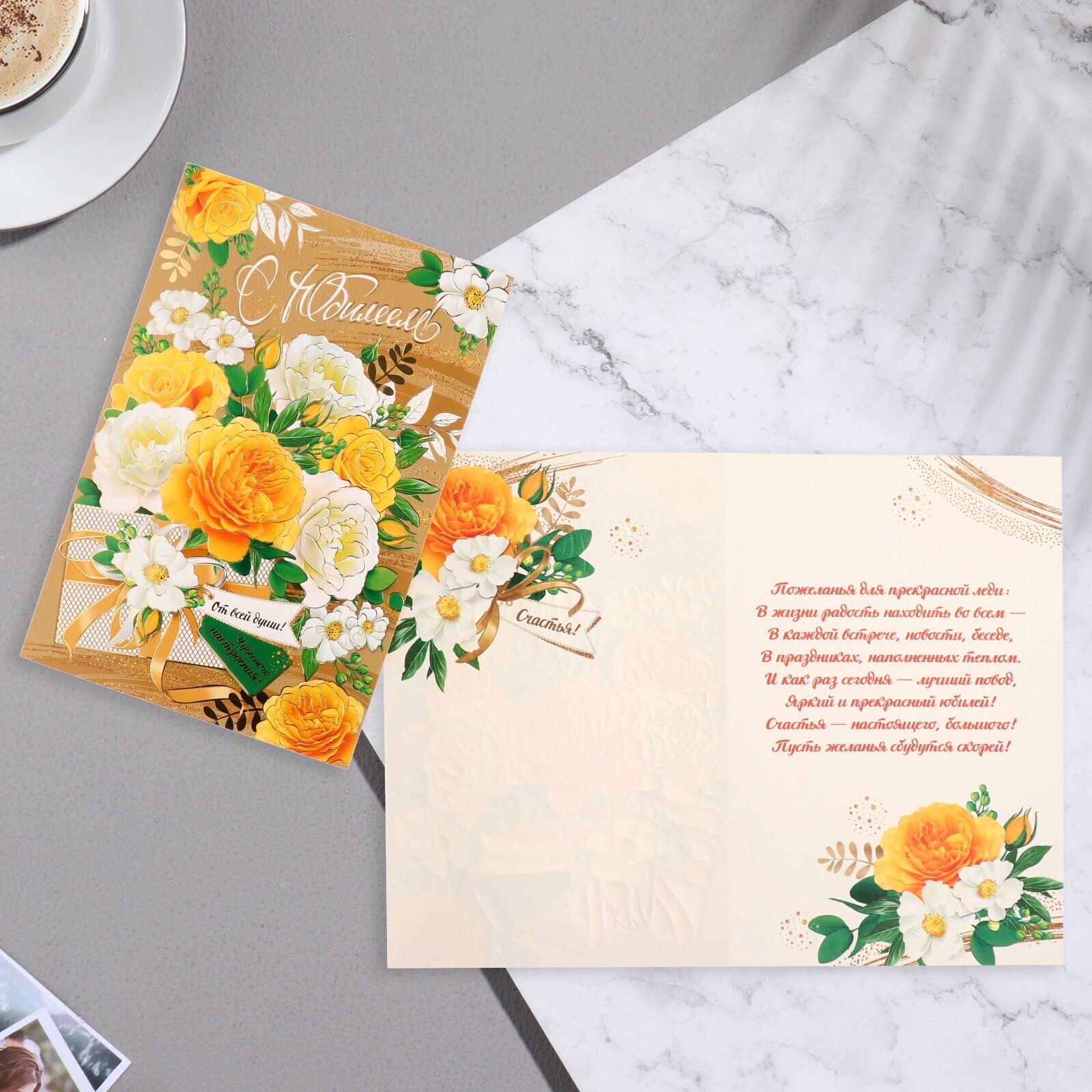 Открытка "С Юбилеем!" тиснение, желтые тона, цветы, 37,9х16 см