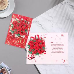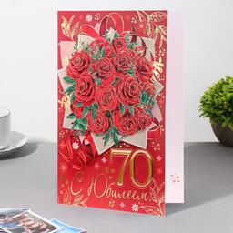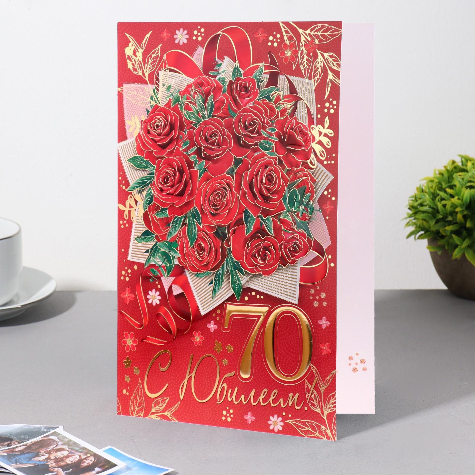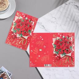 Открытка "С Юбилеем! 70" букет роз, красный фон, 19х29 см