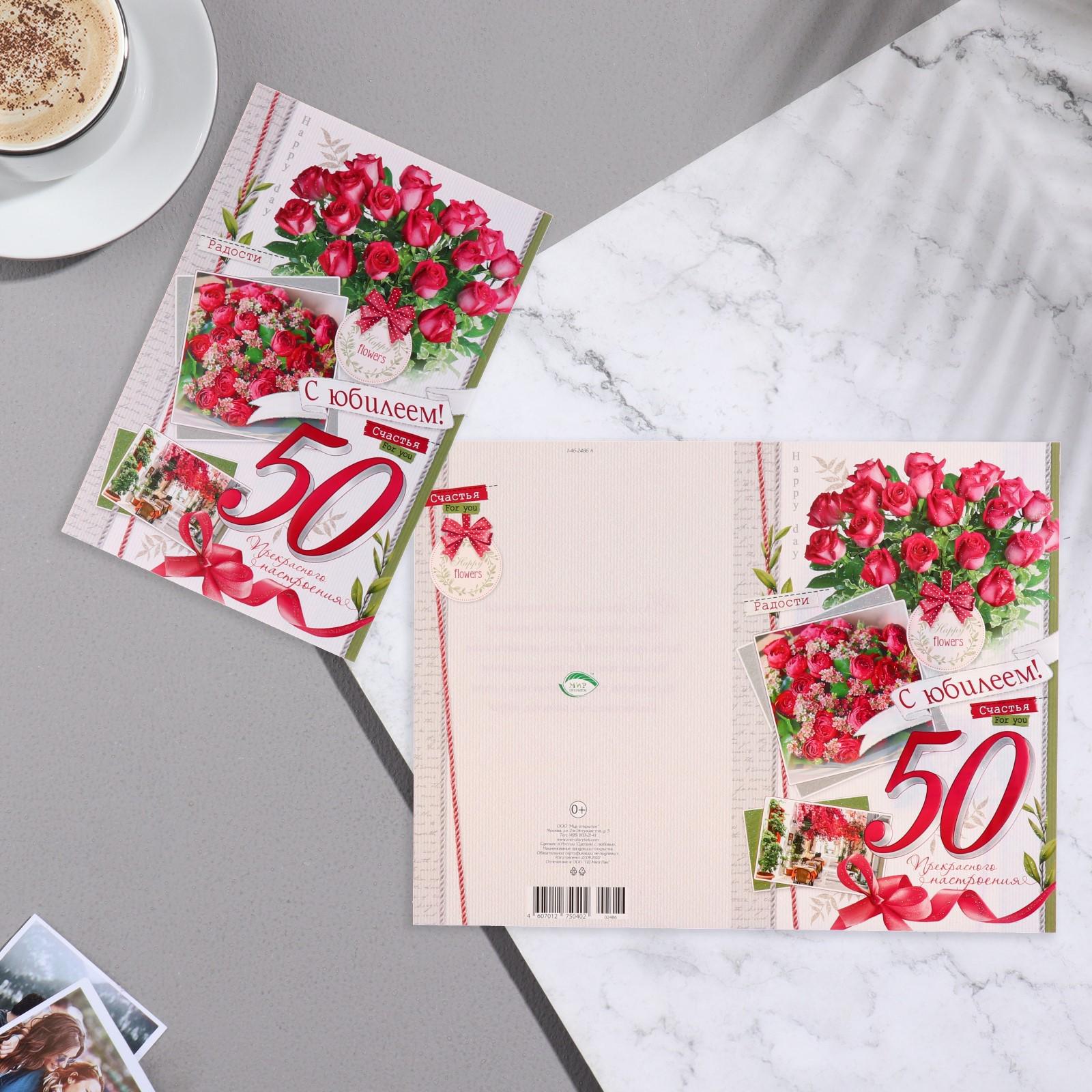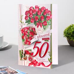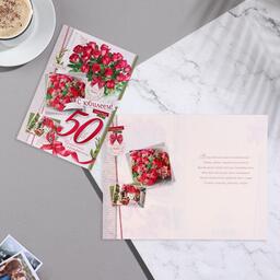 Открытка "С Юбилеем!" розы., лента, белый фон, 19х29 см
