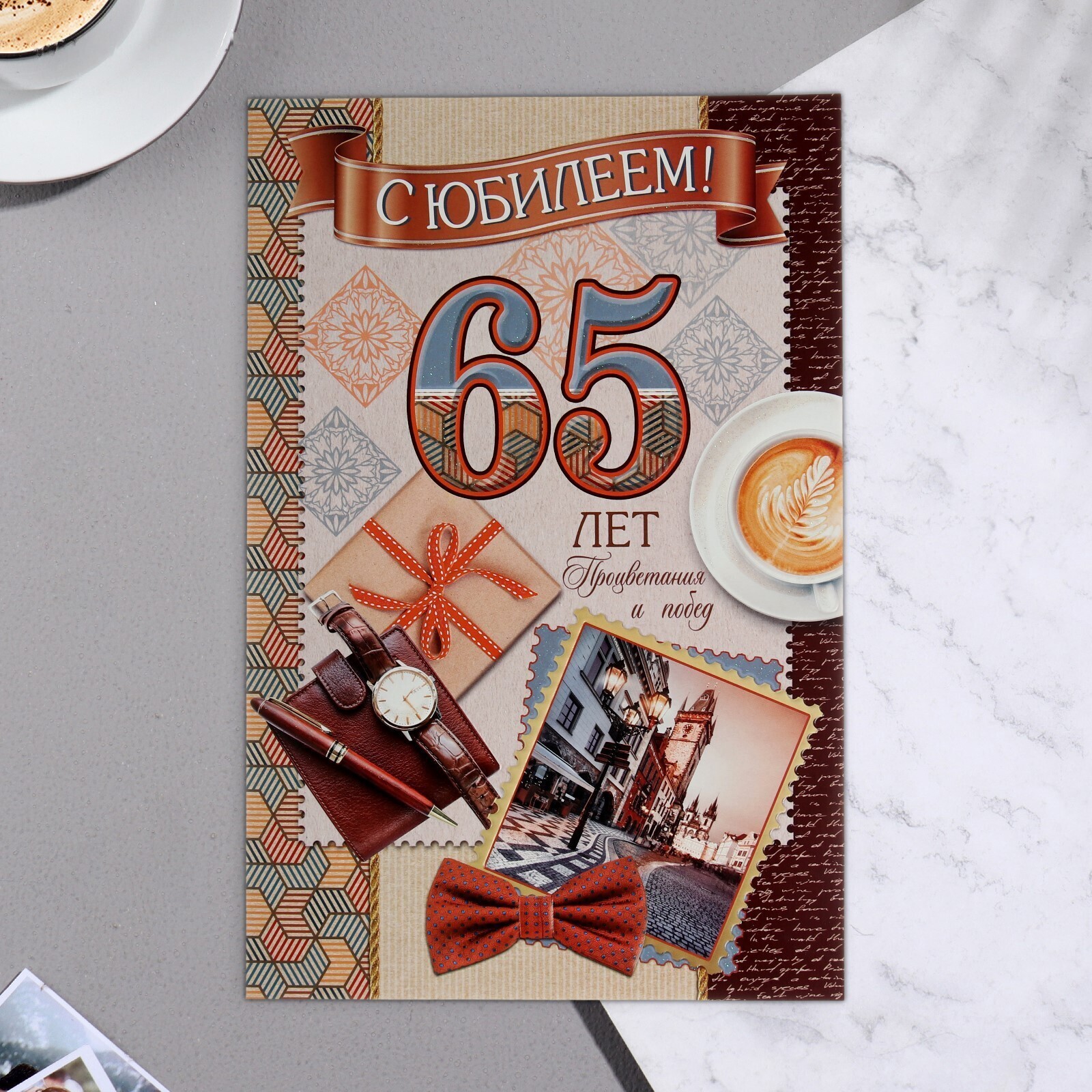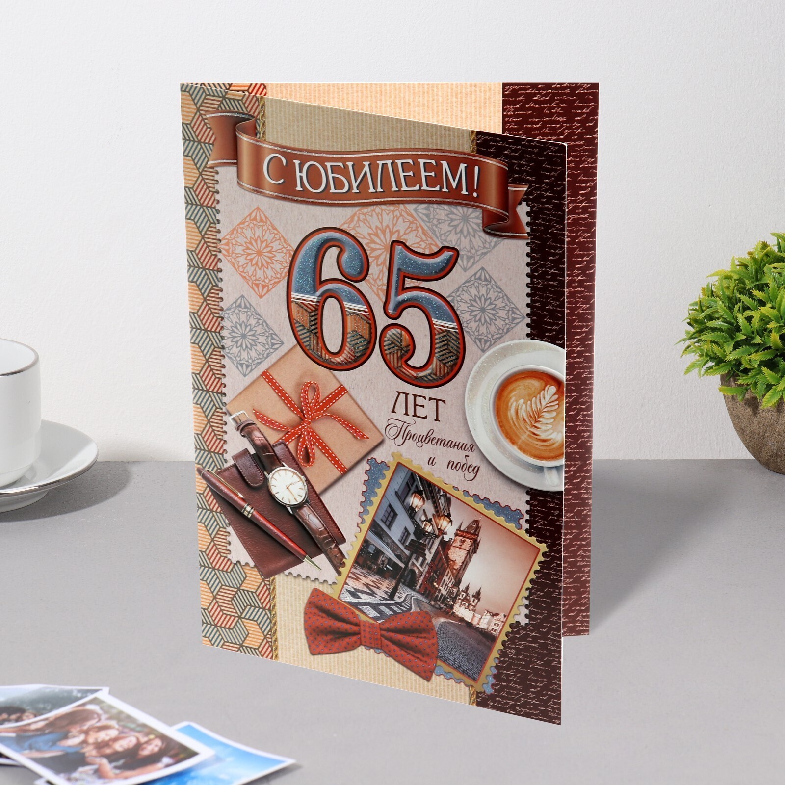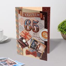 Открытка "С Юбилеем! 65" конгрев, термография, портмоне, часы 37,9 x 29 см