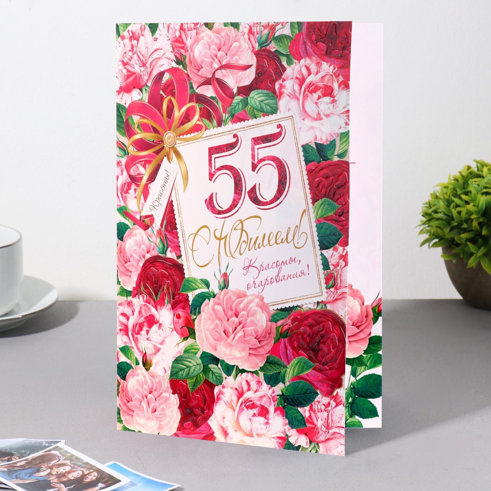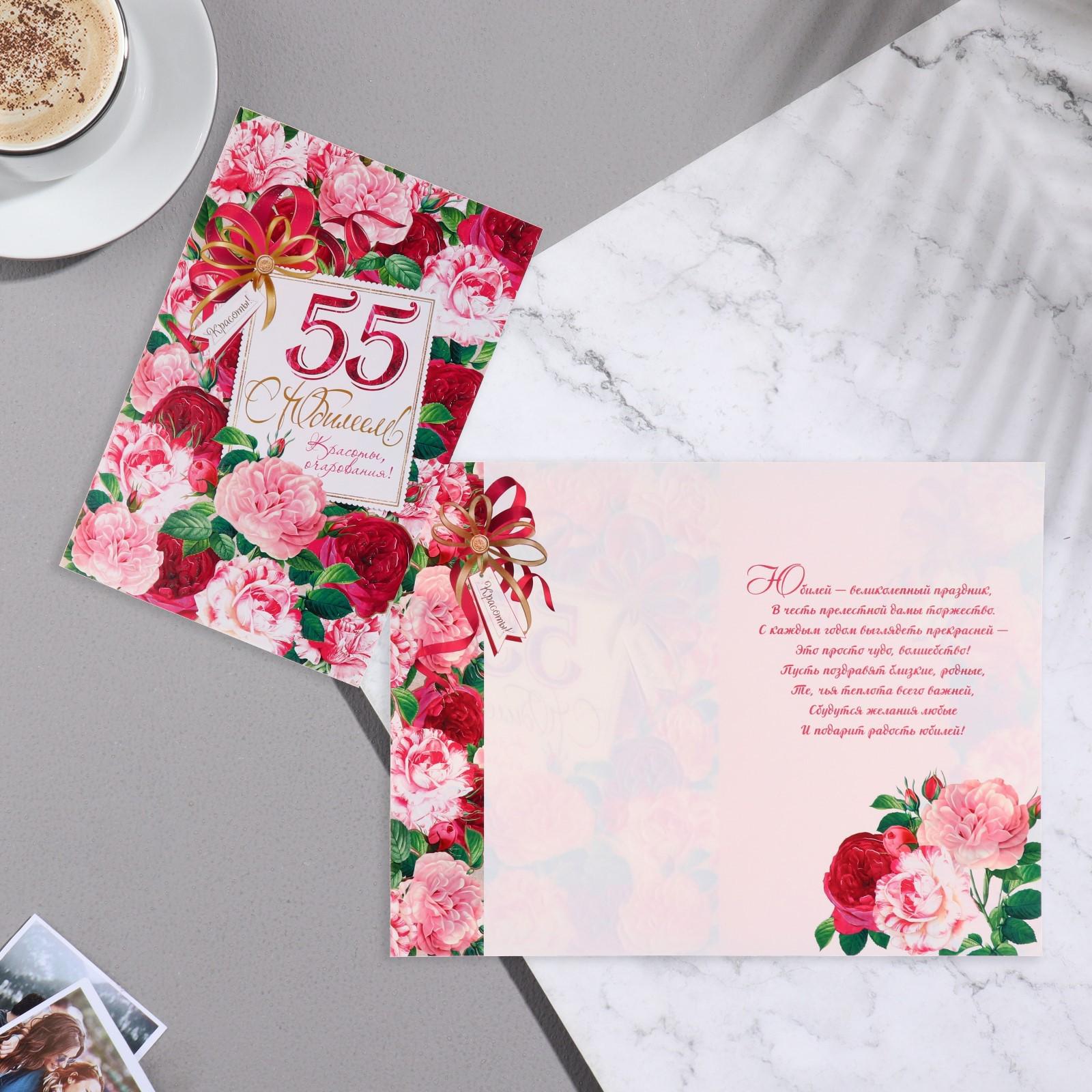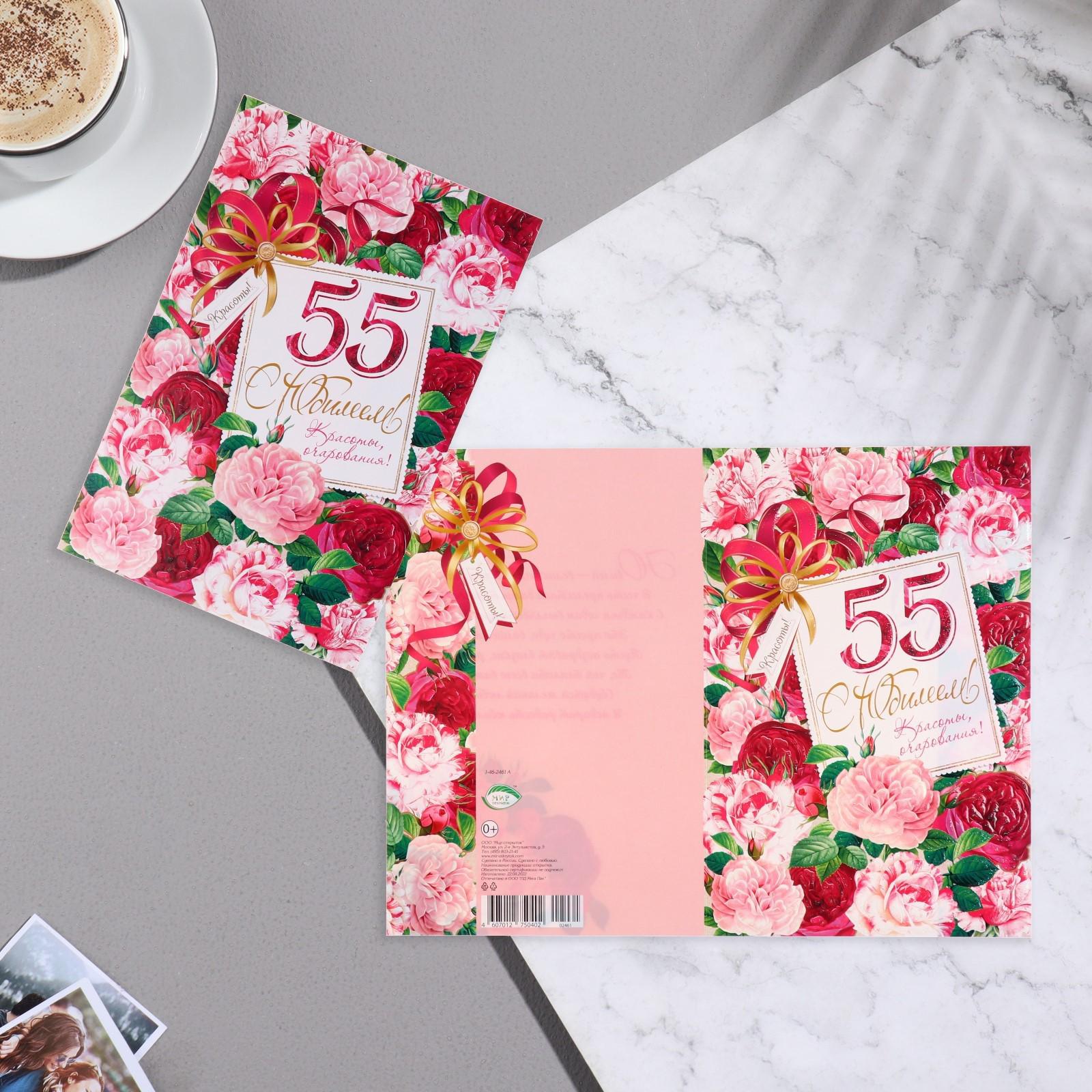 Открытка "С Юбилеем! 55" фон из пионов, 19х29 см