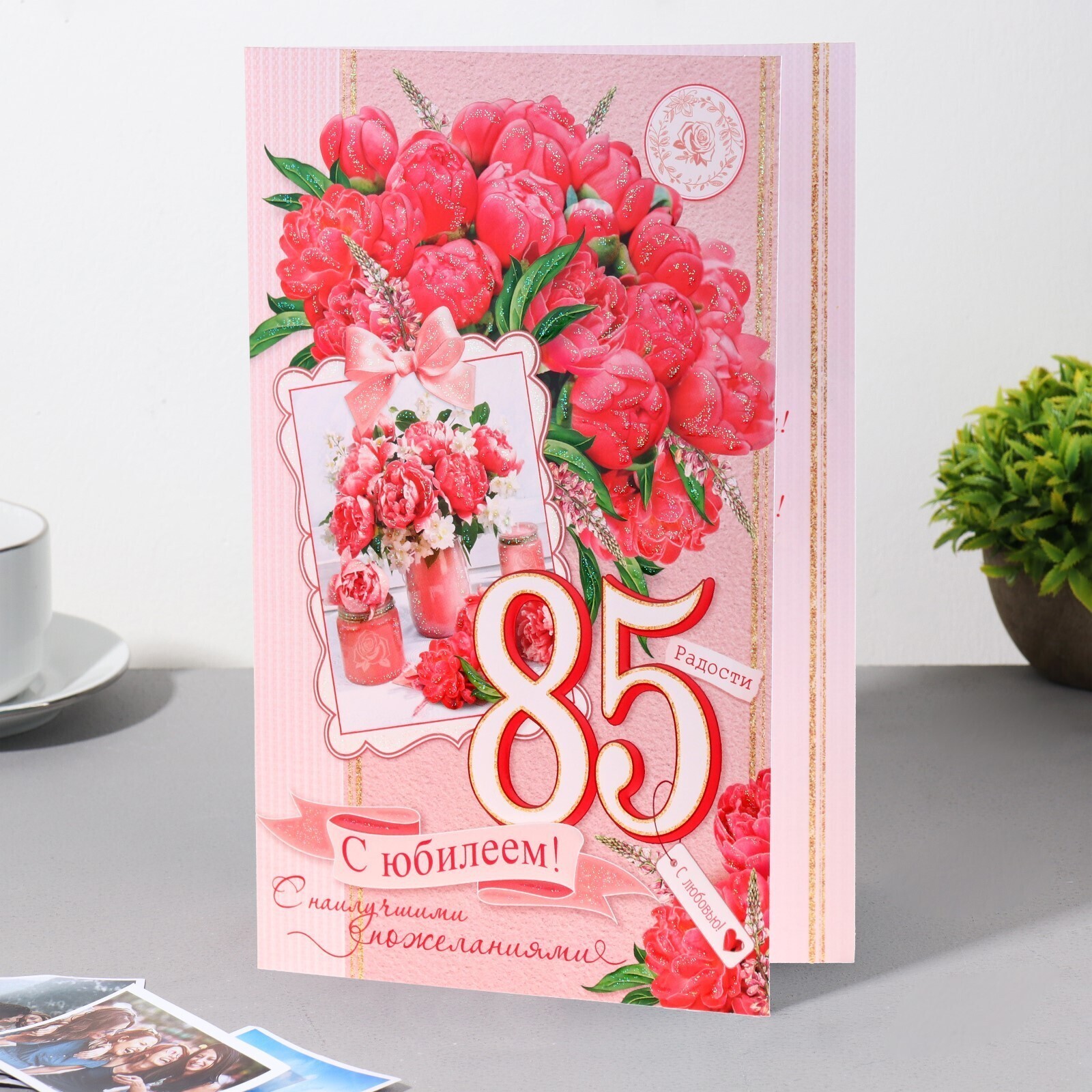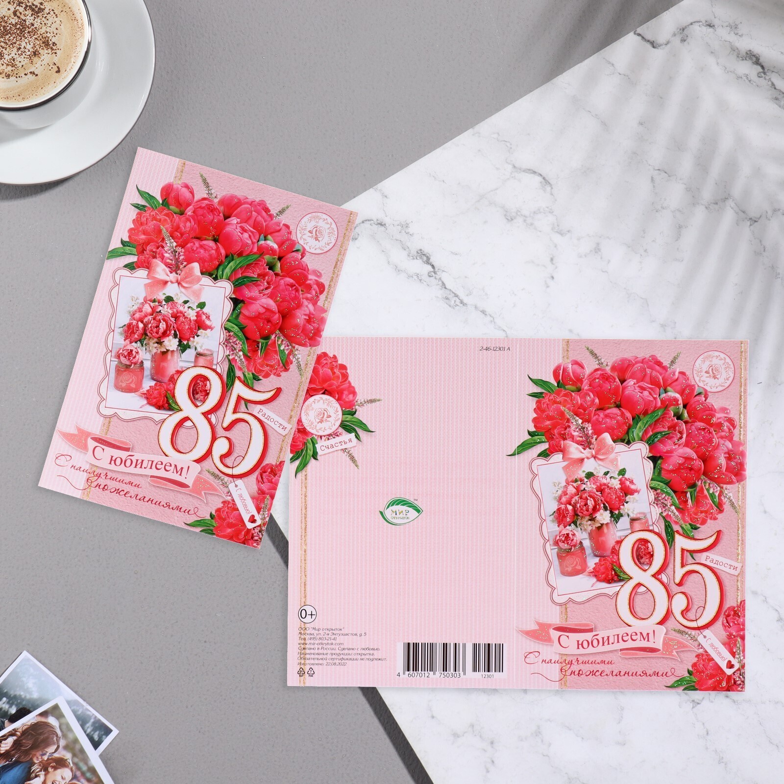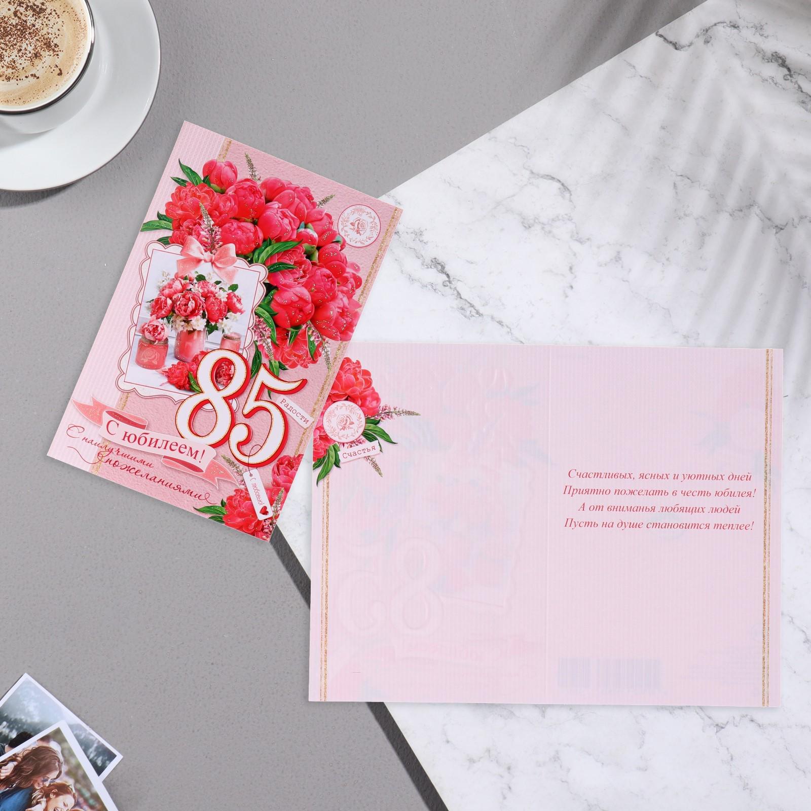 Открытка "С Юбилеем! 85" конгрев, цветы, 12,5х19,4 см