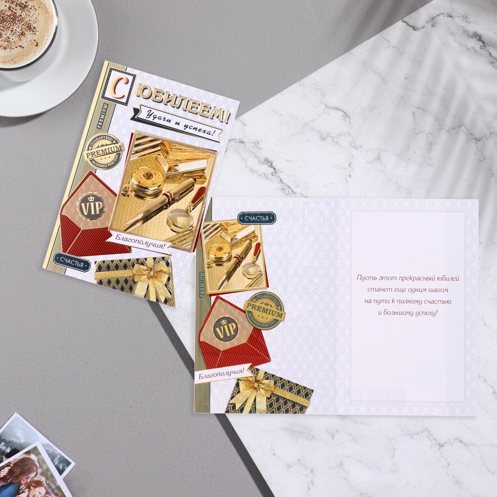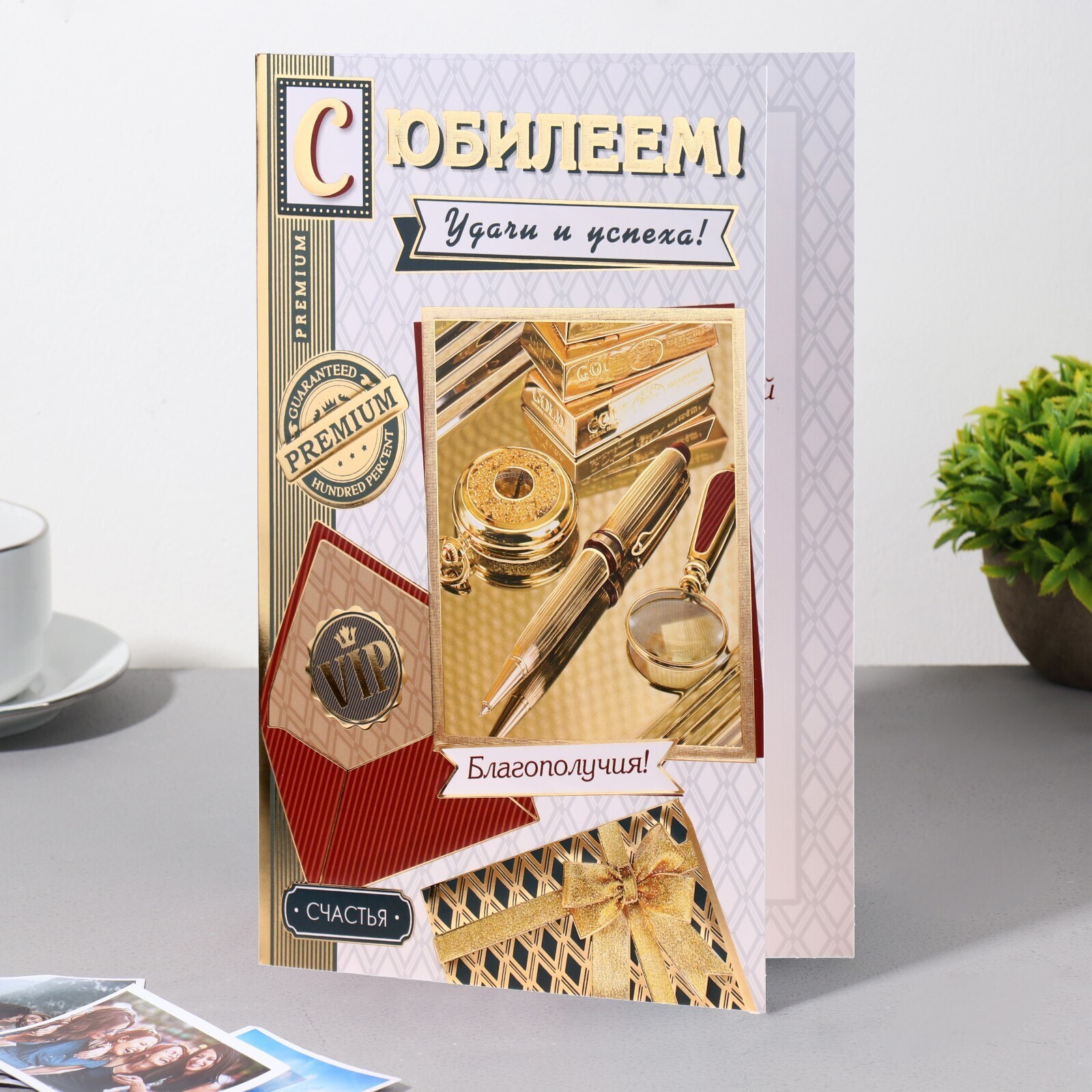 Открытка "С Юбилеем!" золото, ручка, компас, 12,5х19 см