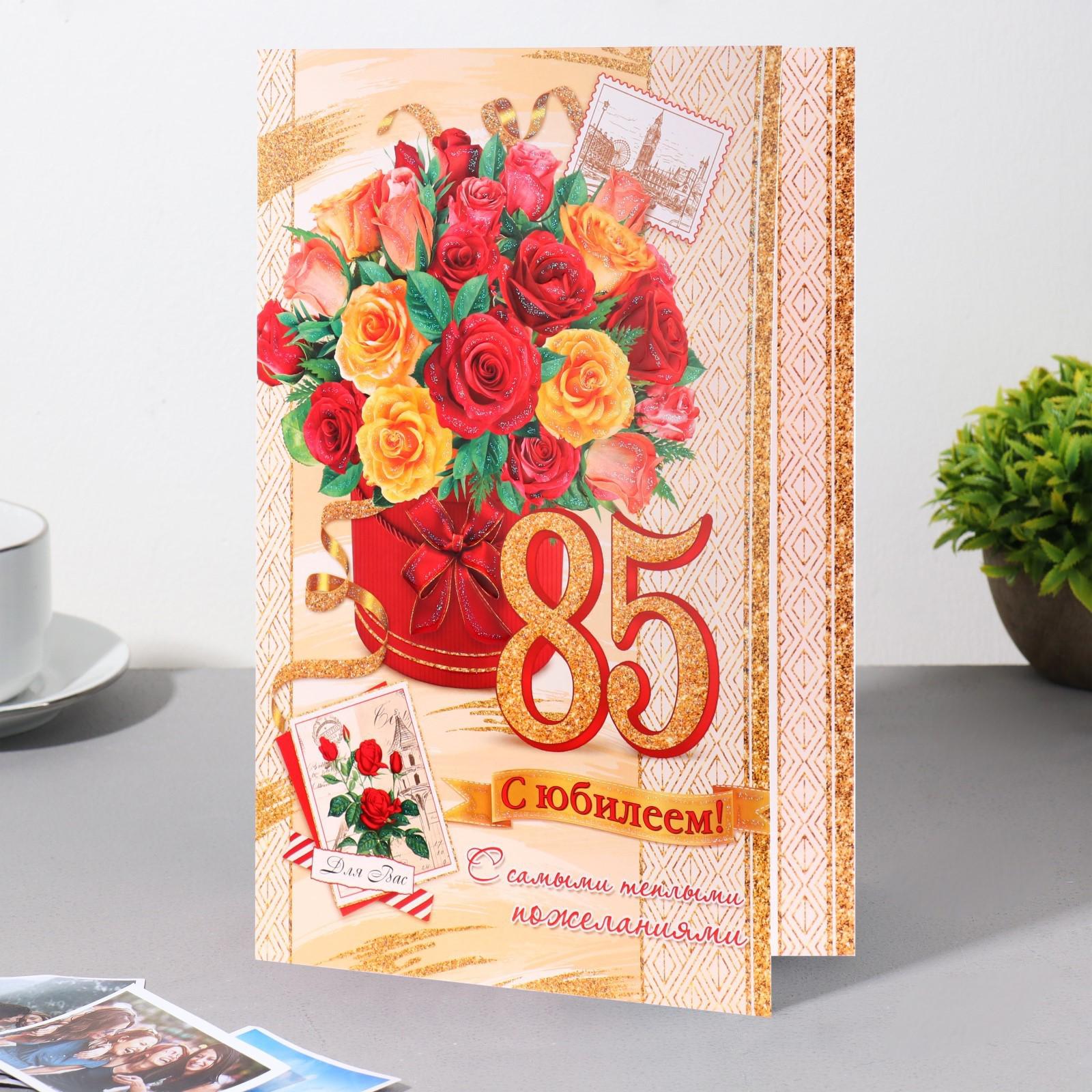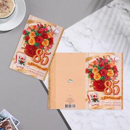 Открытка "С Юбилеем! 85" золото, букет роз, 19х29 см