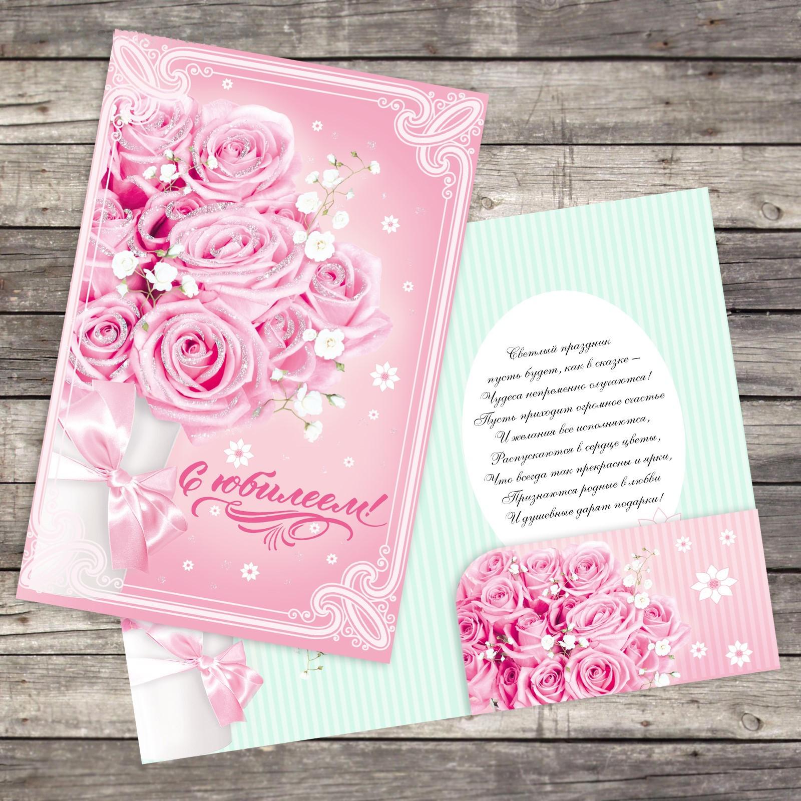Открытка поздравительная «Розовые розы», 19 × 29 см