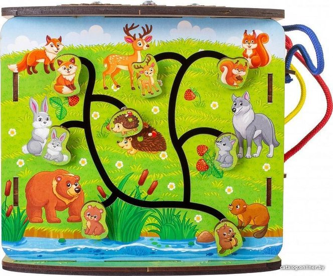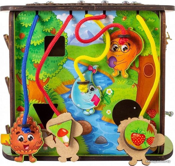 • Комплектация Игровая основа — 1 шт. Спинер — 2 шт. Шестеренки — 9 шт. Фигура вкладыш со шнурком — 5 шт. Шнуровка Липучка Щеколда Колокольчик Молния Лабиринт Инструкция Листовка про Вудлика